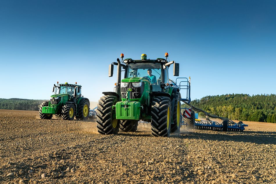 „Ten tahá především secí stroj o záběru 9 metrů, dělá 100 hektarů za den a jeví se nám to jako ideální kombinace. Mimo setí je ta 6155tka nasazená v pícninařině a dopravě, příležitostně oře s pětiradličným pluhem. Tento traktor je slušně vybavený a pořizovali jsme ho už i s kloboukem,“ říká pan Černý st. a jeho syn dodává: „Navigace John Deere se nám osvědčily, máme je na obou traktorech 6R, bohužel na kombajnu zatím ještě ne. Do budoucna bychom chtěli s novým kombajnem řešit i mapování pozemků.“ Aktuálně nejnovější stroj s jelenem ve znaku je na Farmě Staré Sedlo od letošního roku traktor 6250R s maximálním výkonem 300 koní.
