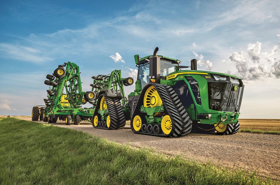 Nové traktory 9RX jsou vybavené 18litrovým motorem JD18X, s maximálním výkonem až 913 koní při nízké specifické spotřebě paliva a s maximálním točivým momentem až 4 234 Nm. Za zmínku také stojí, že dosahuje plné shody s emisní normou Stage V, aniž by bylo nutné používat kapalinu pro úpravu výfukových plynů vznětových motorů (DEF) / AdBlue®. Varianta s trojitým hydrogenerátorem o maximálním průtoku až 636 l/min a hydraulické inteligentní řízení výkonu (IPM), které v případě potřeby zajistí až 40 koní navíc, poskytnou dostatečný výkon i pro největší nářadí s hydraulickým pohonem. Nová plně mechanická převodovka e21™ PowerShiftTM s funkcí Efficiency Manager umožňuje plynulé využití vysokého výkonu motoru a točivého momentu modelů 9RX. Automatika známá z převodovky e23TM zajišťuje výjimečný jízdní komfort. Malé rozestupy mezi jednotlivými 21rychlostními stupni umožňují řidičům snadno nastavit vhodnou pracovní rychlost pro jednotlivé práce. Nové podvozky s většími hnacími koly o průměru 1 200 mm mají úhel opásání 110° a umožňují současné zapojení 7,5 zubu pásu. Maximální hmotnost s přídavnými závažími 38 100 kg zaručuje efektivní přenos výkonu a točivého momentu na povrch. Vyšší výkon nových traktorů 9RX si sice vyžádal kompletně novou robustnější konstrukci, ale minimální tlak na půdu zůstává na hodnotě 0,58 kg/cm², což je srovnatelné se současnými menšími modely 9RX.