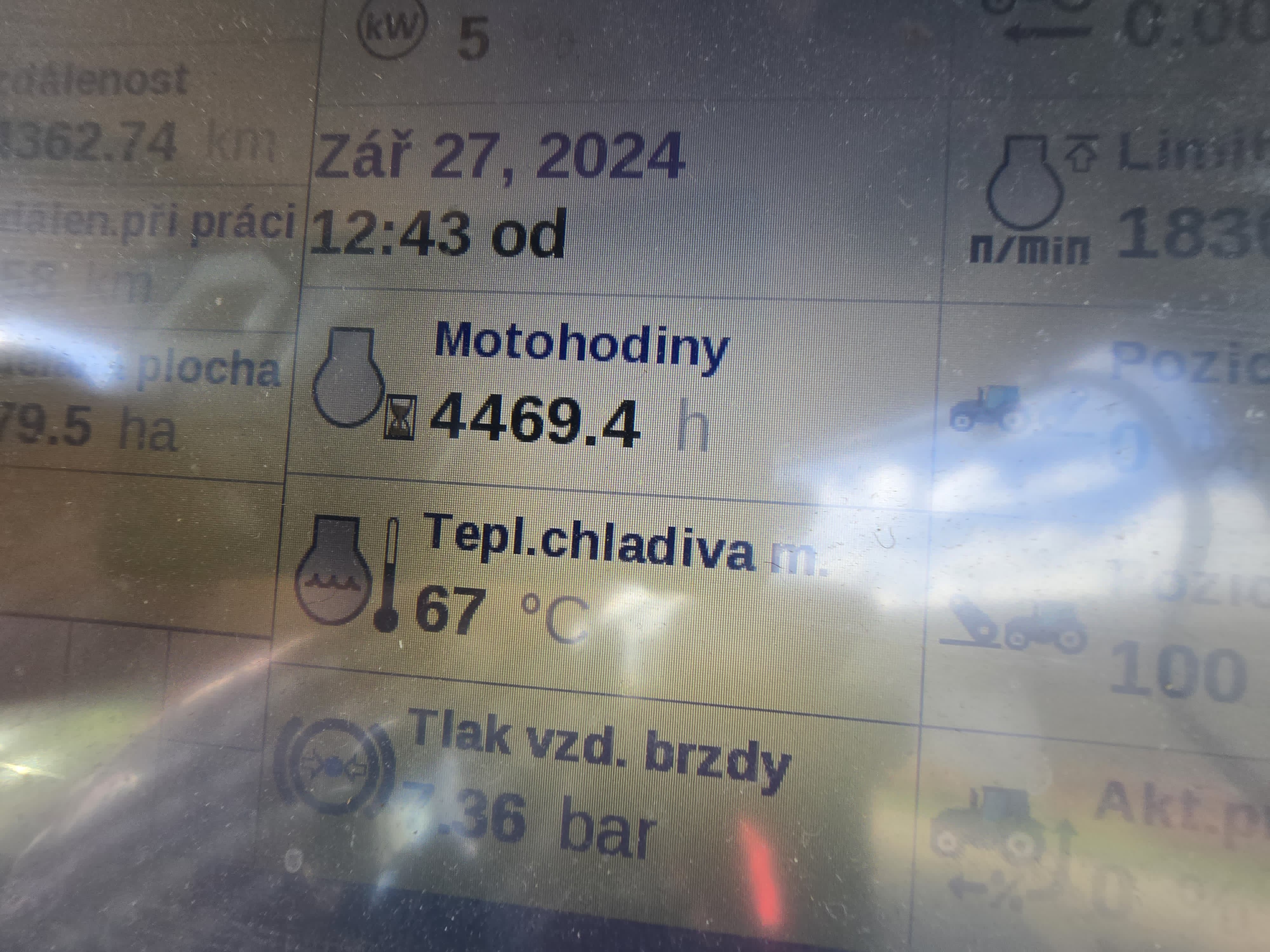• bez navigace Trimble – v případě zájmu o navigaci (odemčená na signál RTK+), připočítává se k ceně 270.000 Kč. Navigace je teprve 6 měsíců stará, stále v záruce