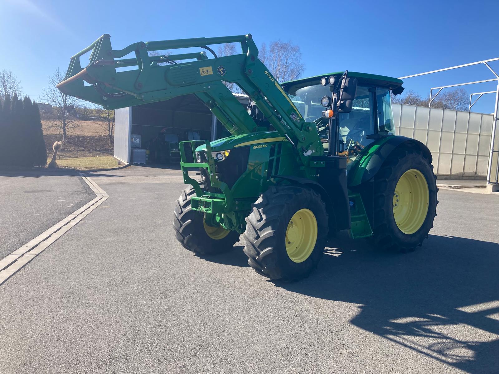 Kolový traktor John Deere 6095MC s čelním nakladačem John Deere 603R