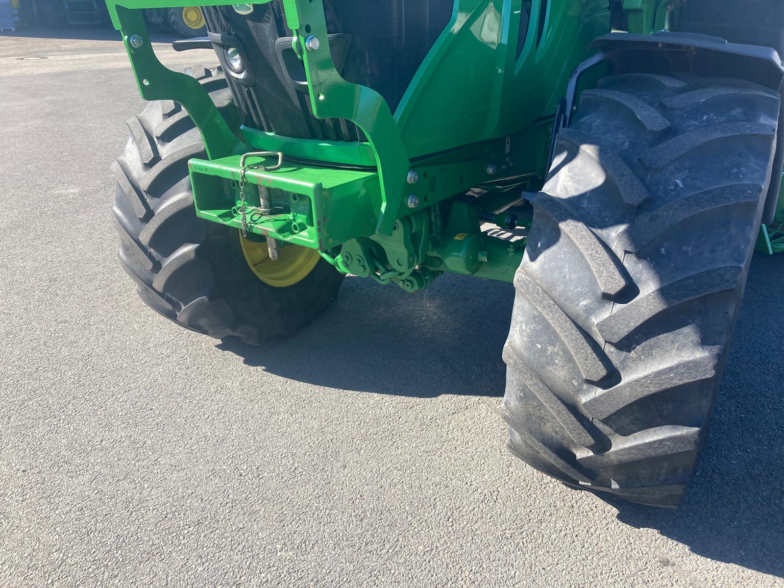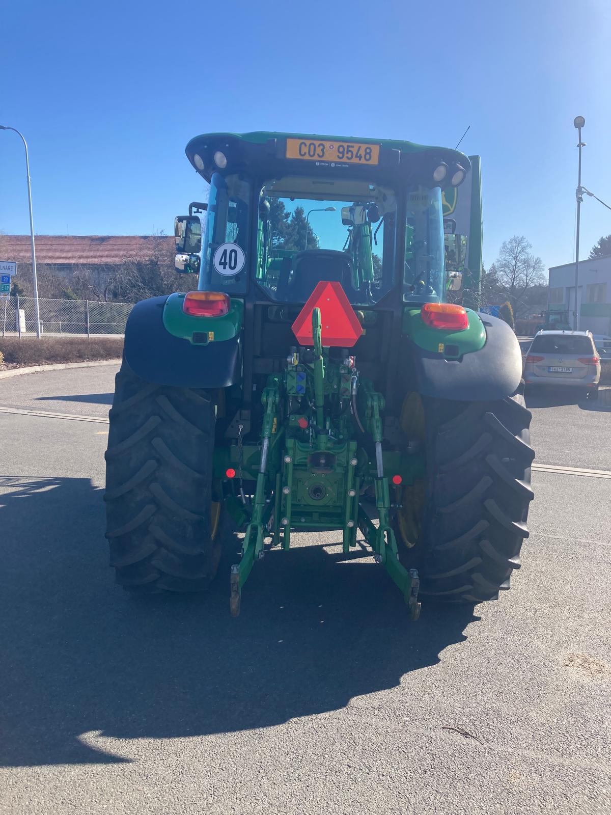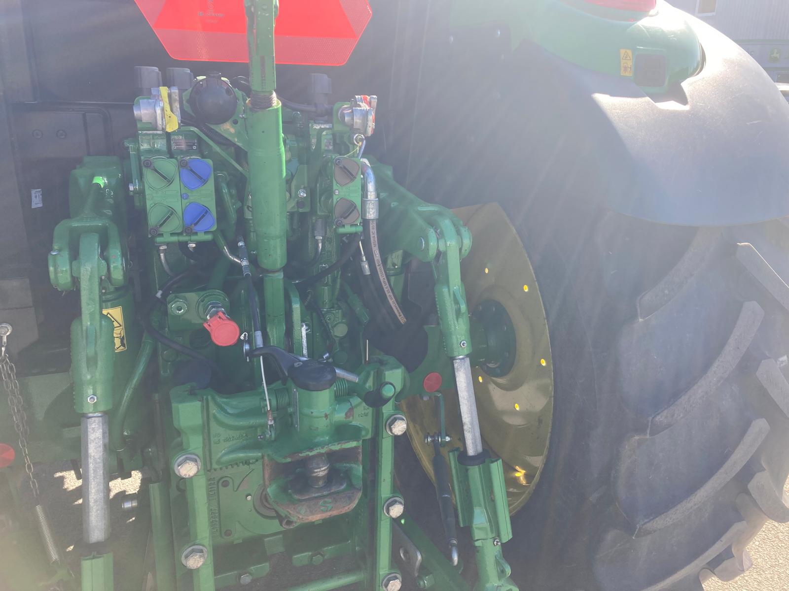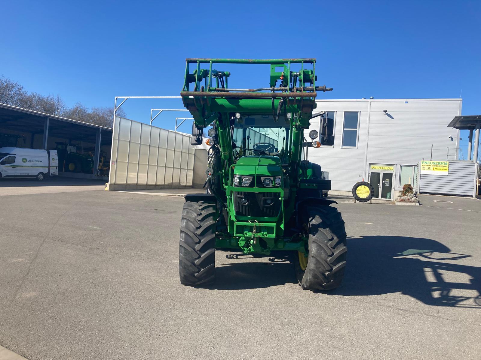 rok výroby 2018, do provozu 22.3. 2019, jmenovitý výkon motoru 95 PS, maximální 100 PS, najeto 3181 mth, odpružená přední náprava TLS, převodovka PowrQuad Plus 24/24 (4 rychlost pod zatížením řazené v 6 skupinách, el. reverz), vývodový hřídel 540/540E/1000 ot./min, zadní závěs s automatickou hubicí, vzduchové brzdy dvouhadicové, 3 hydraulické okruhy, sedačka spolujezdce, klimatizace, pneu přední 480/65R24 - 40% vzorku, zadní 540/65R38 - 40% vzorku, otočné blatníky, skříňka na nářadí, střešní okno, čelní nakladač John Deere 603R, kryt čelní masky
