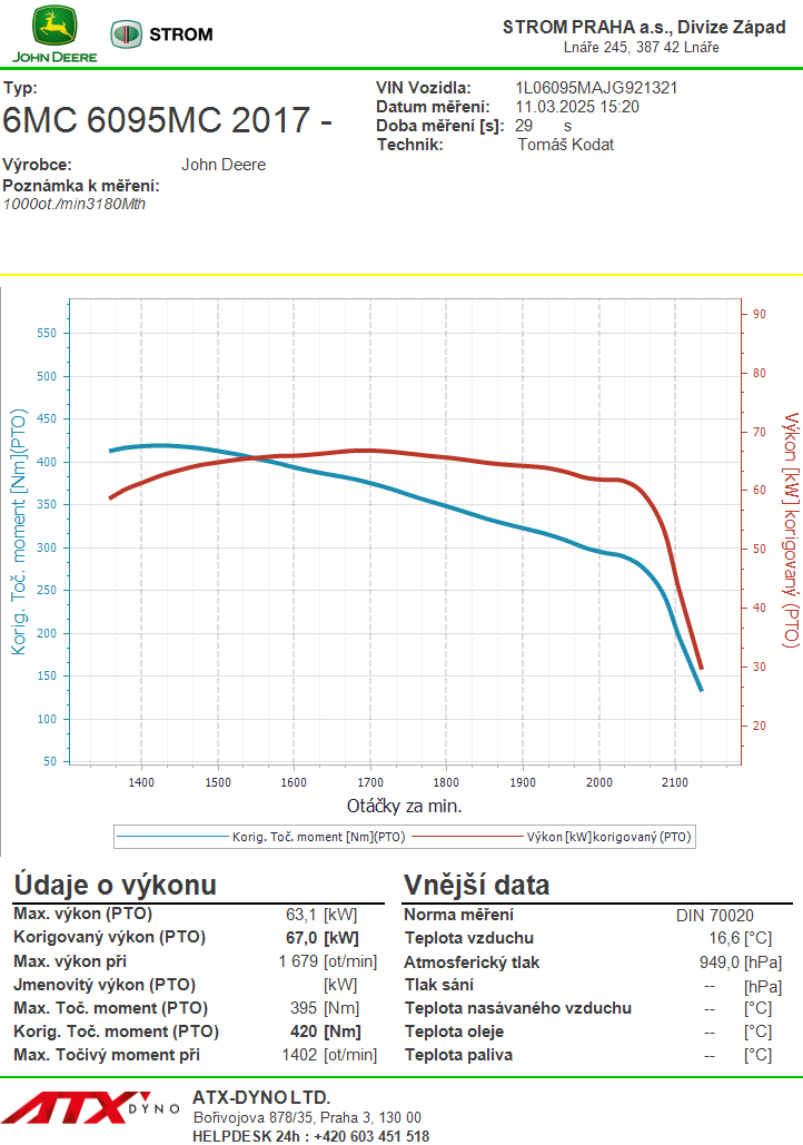 Na motorové brzdě naměřen korigovaný výkon 67 kW