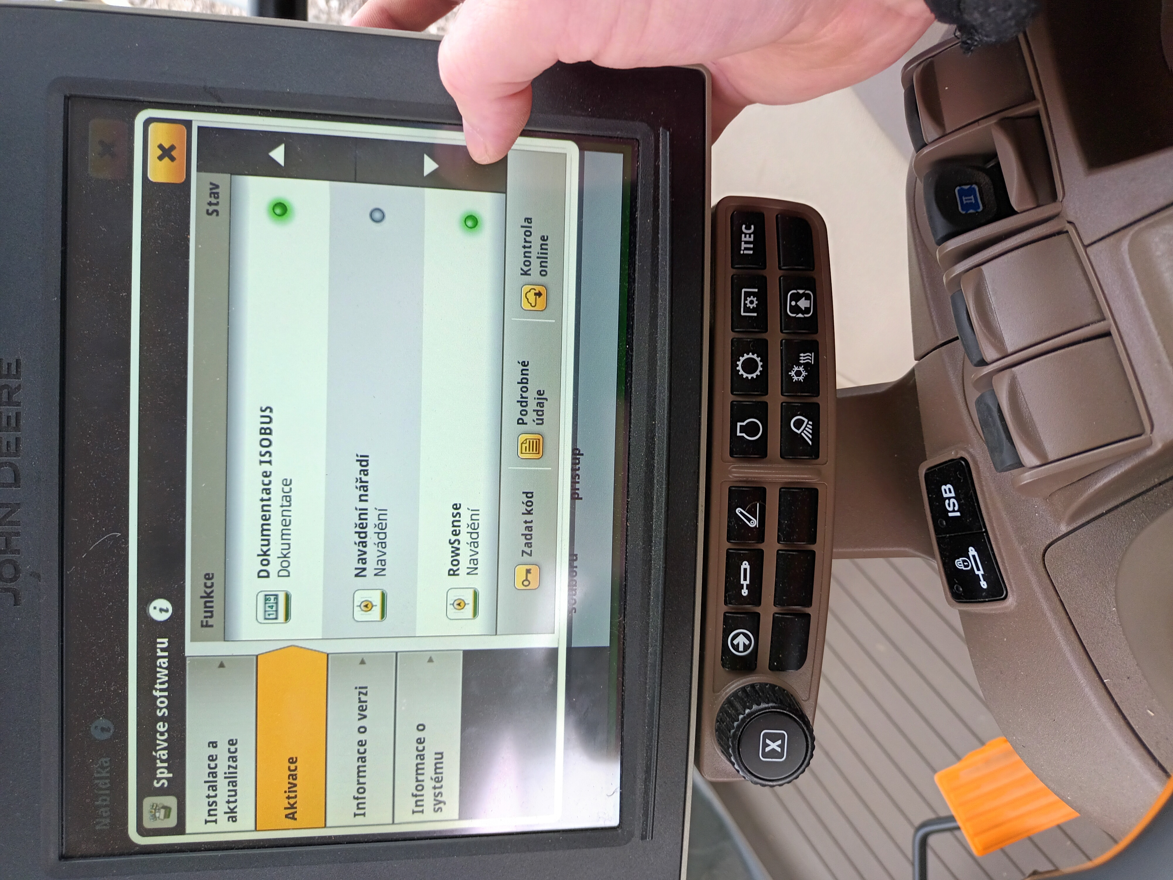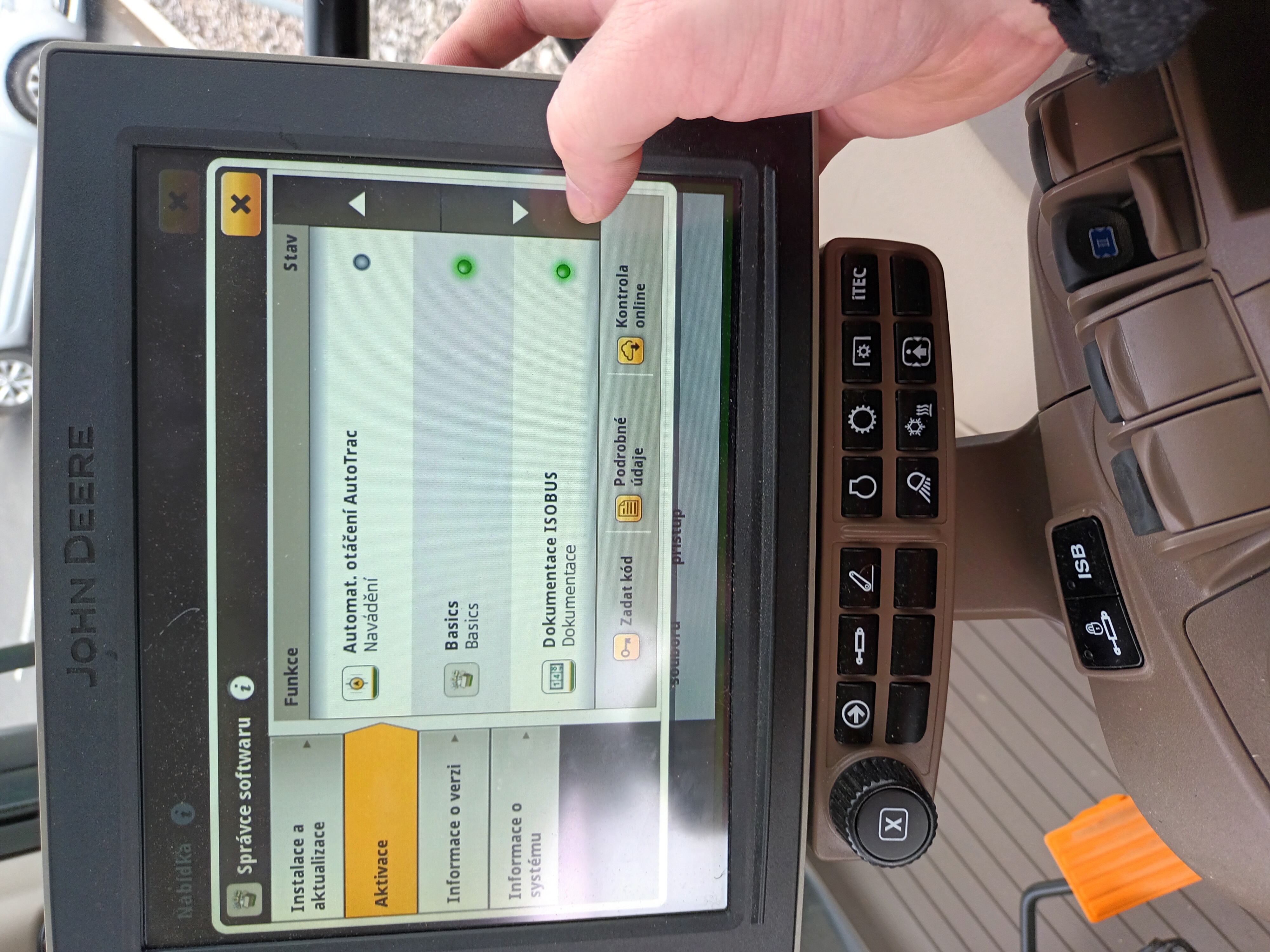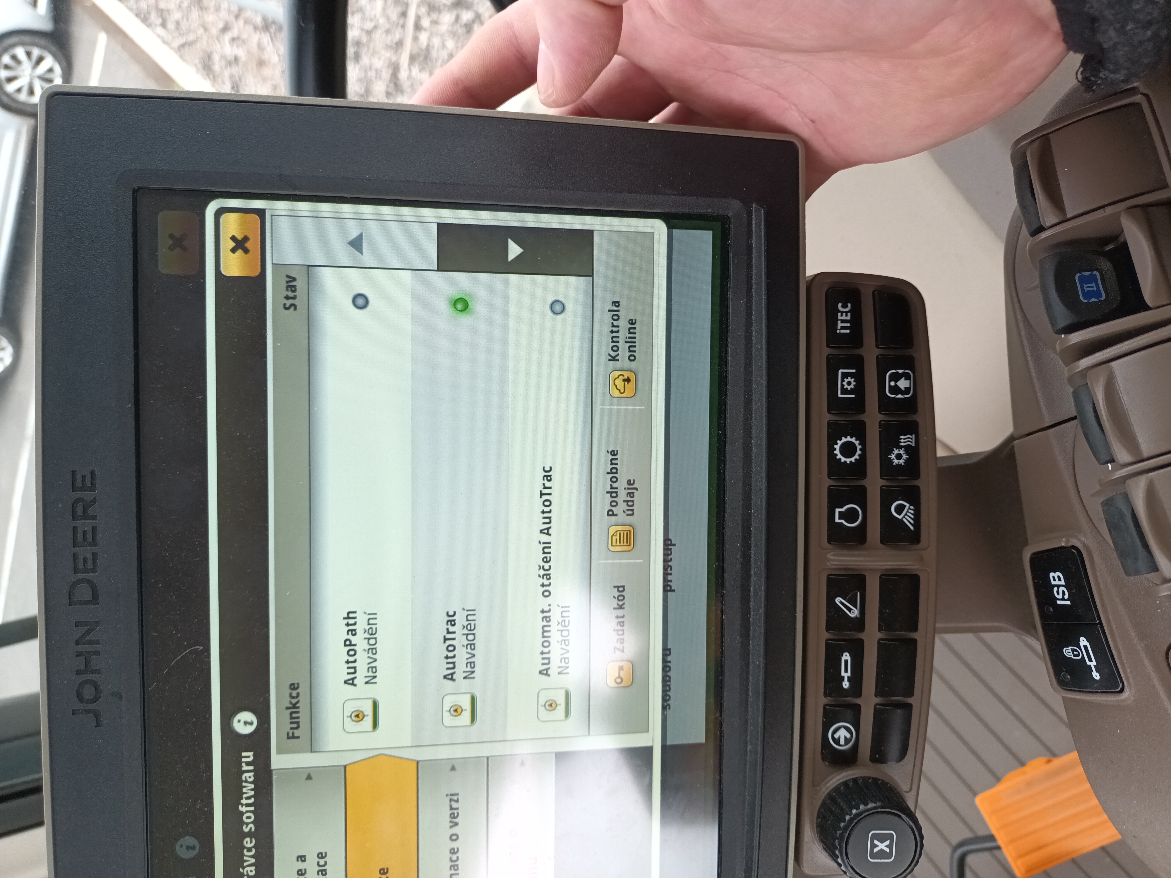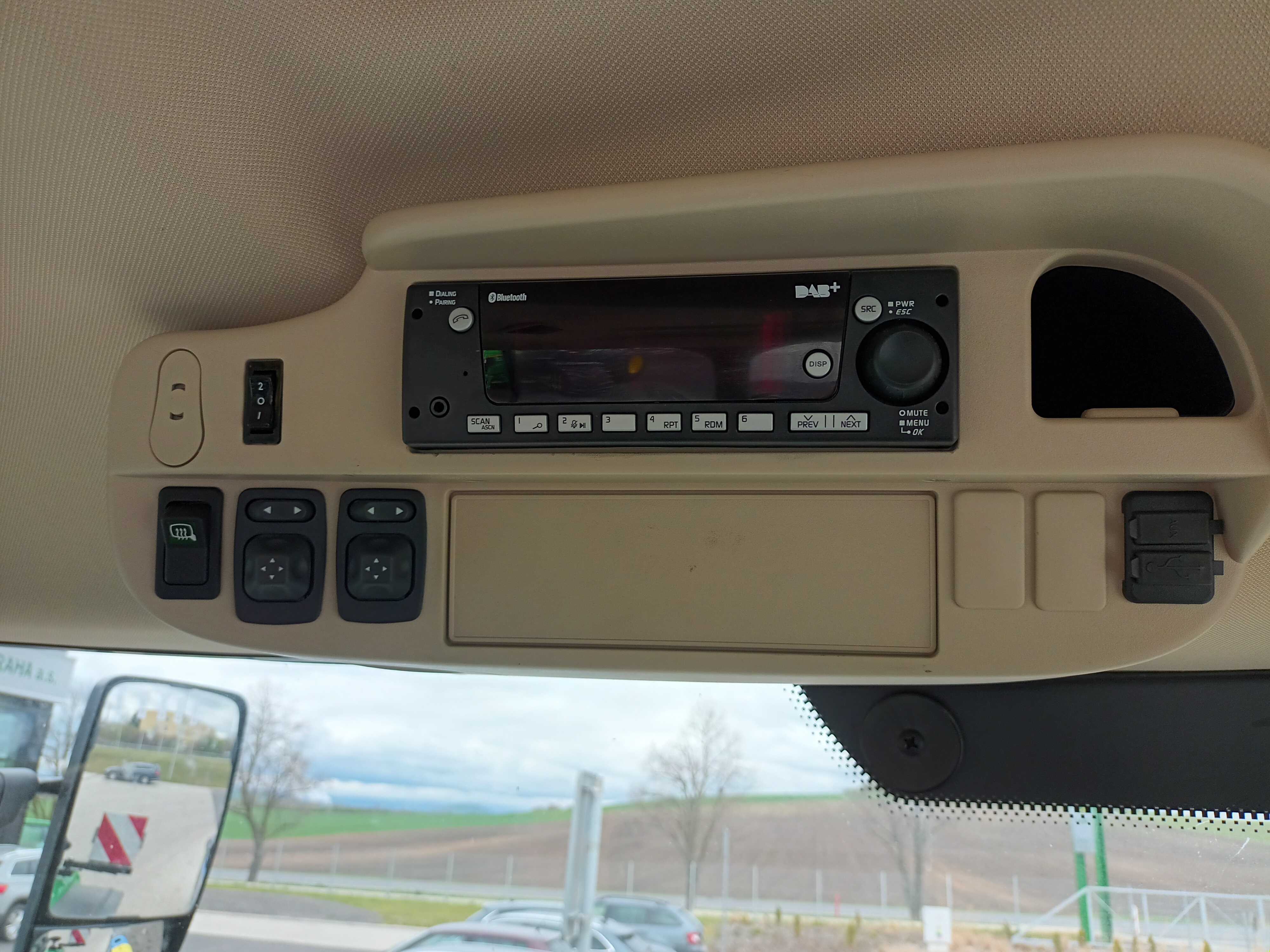 - Držák monitorů, lišta mezi sloupky A a C v kabině vpravo