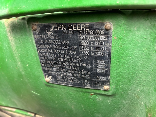Výrobní číslo: RW7930D021082, výkon 198kW/270koní, najeto 18.560Mth, datum první registrace - 02.04.2009 , převodovka AP, 4x hydraulické okruhy, pto: 540/1000ot, příprava GreenStar a IsoBus, hydraulické čerpadlo 120l/min., pneumatiky: 650/65R42 + 600/65R28, sedačka spolujezdce, přední PTO, závaží v kolech, vzduchové brzdy, pravidelně servisováno.