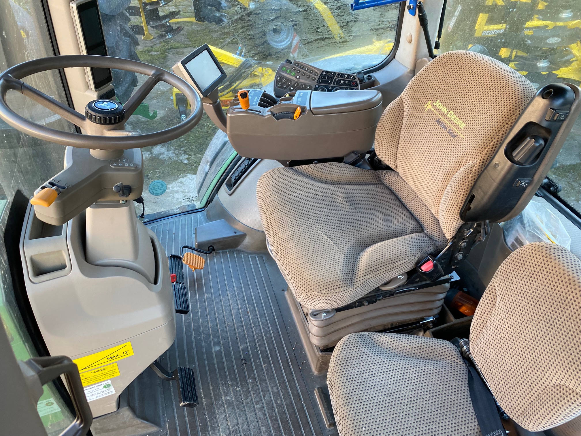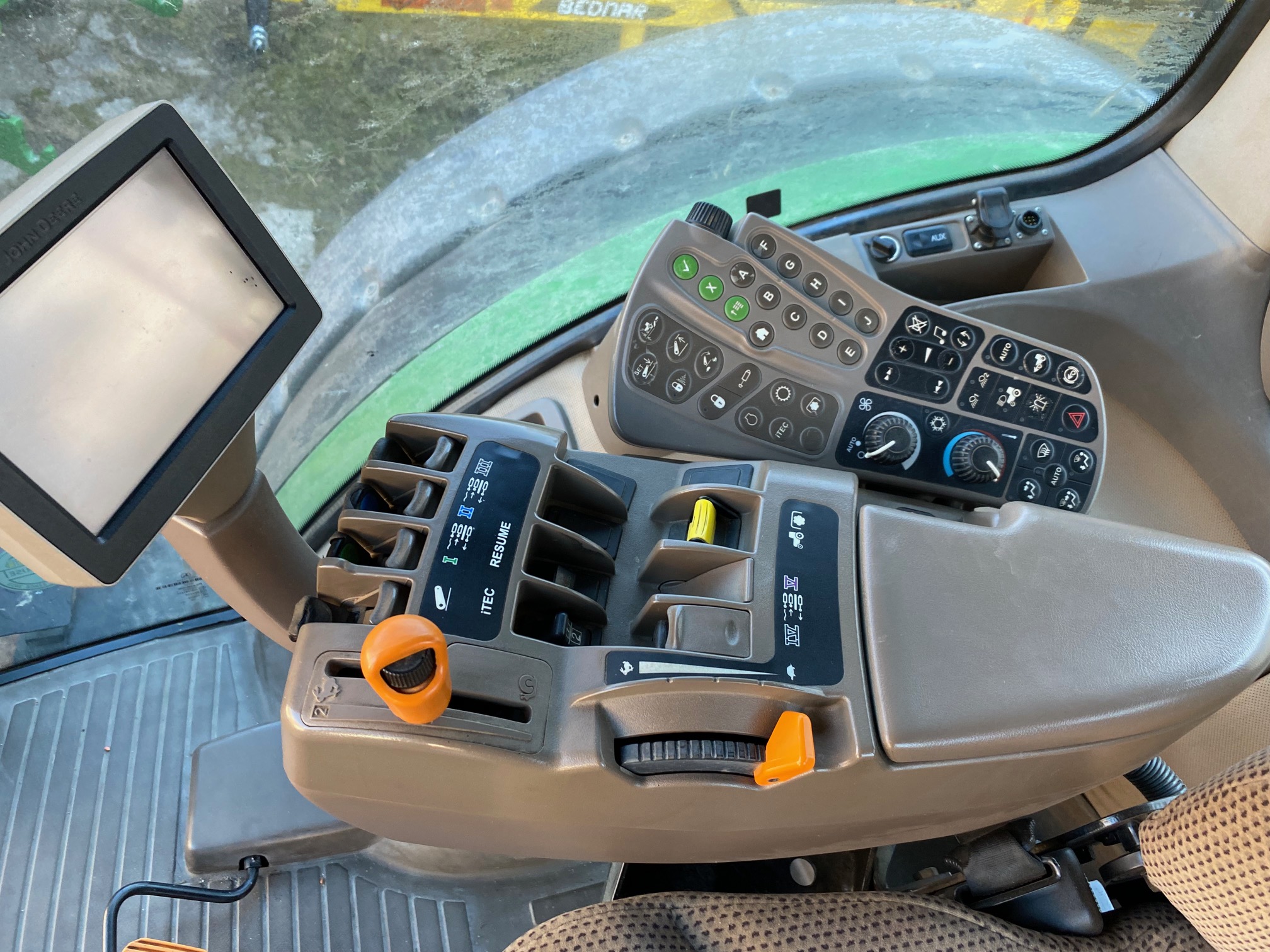 Výrobní číslo: 1RW8335RJDD075306, rok výroby: 2013, převodovka AutoPowr, konzola závaží, dotykový displej 7“ Command Center, standartní řízení, světla Xenon, PTO 1000ot., 4x hydraulický okruh, obě zrcátka teleskopická, závěs, K80, vzduchové brzdy, pneumatiky: 800/70R38 + 600/70R30 Mitas