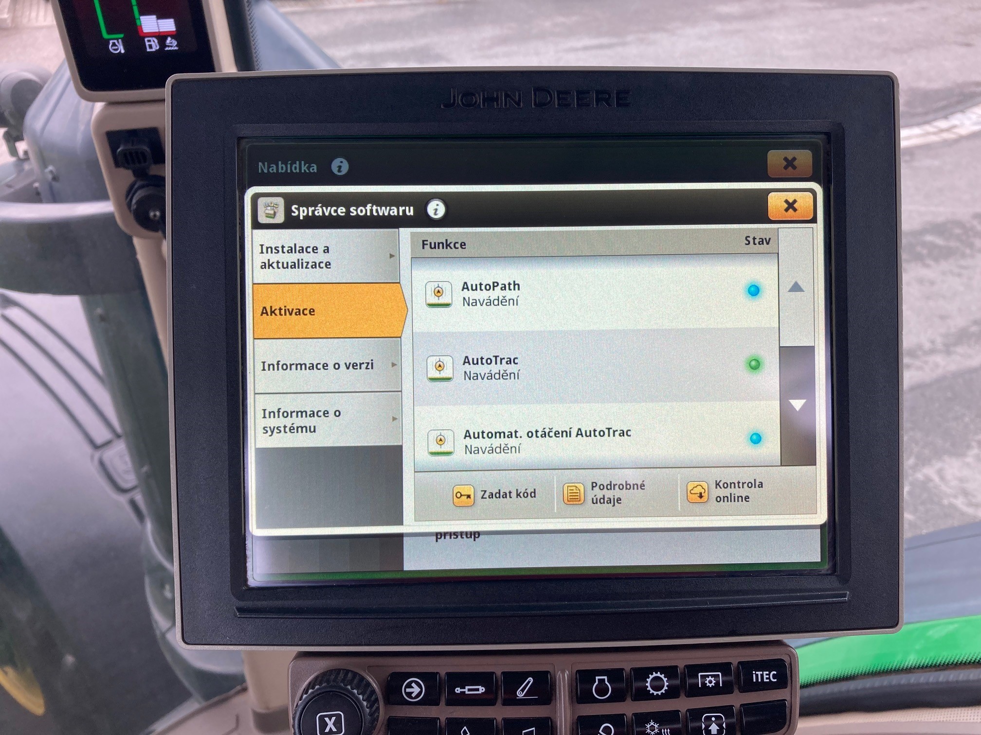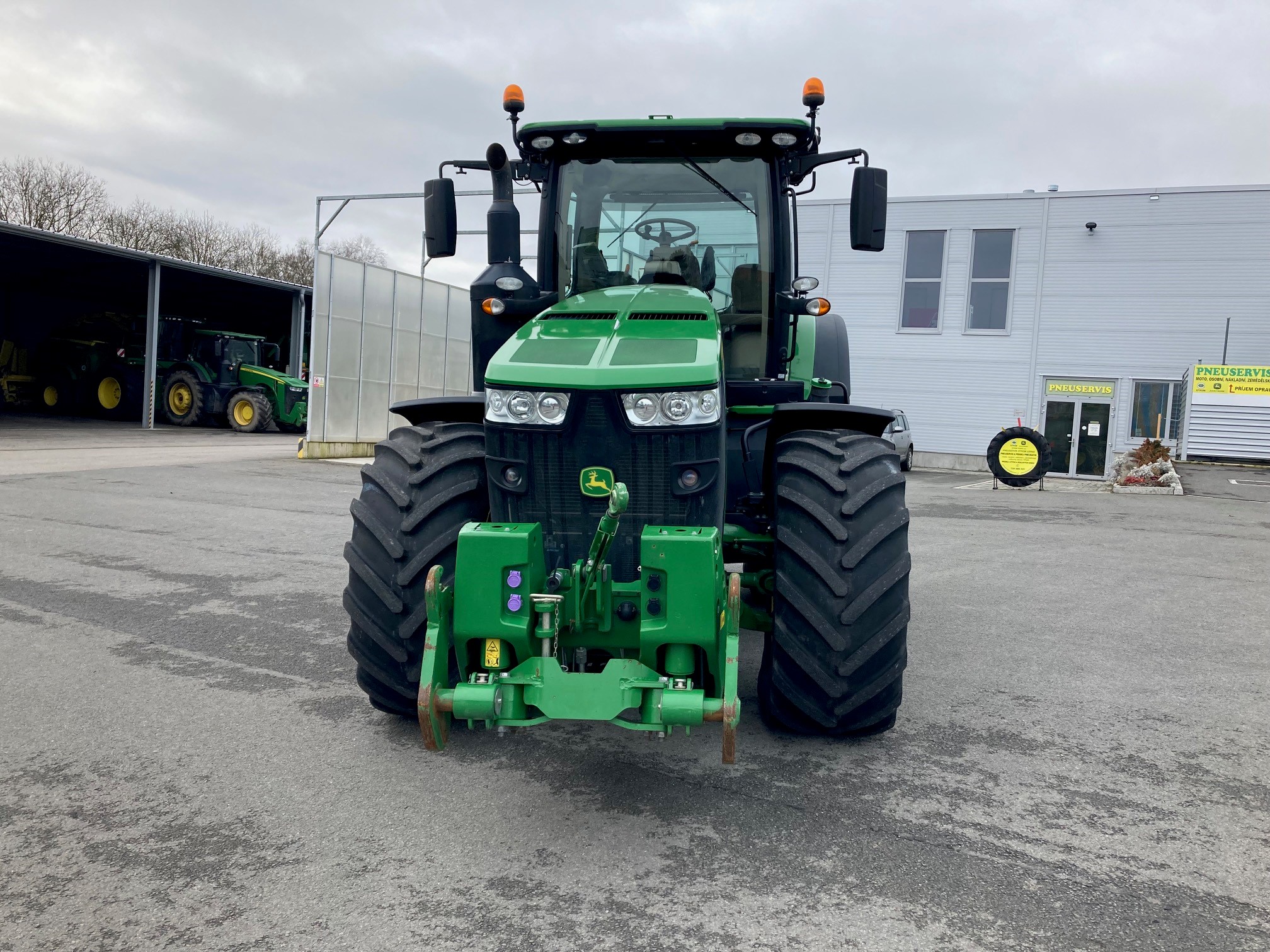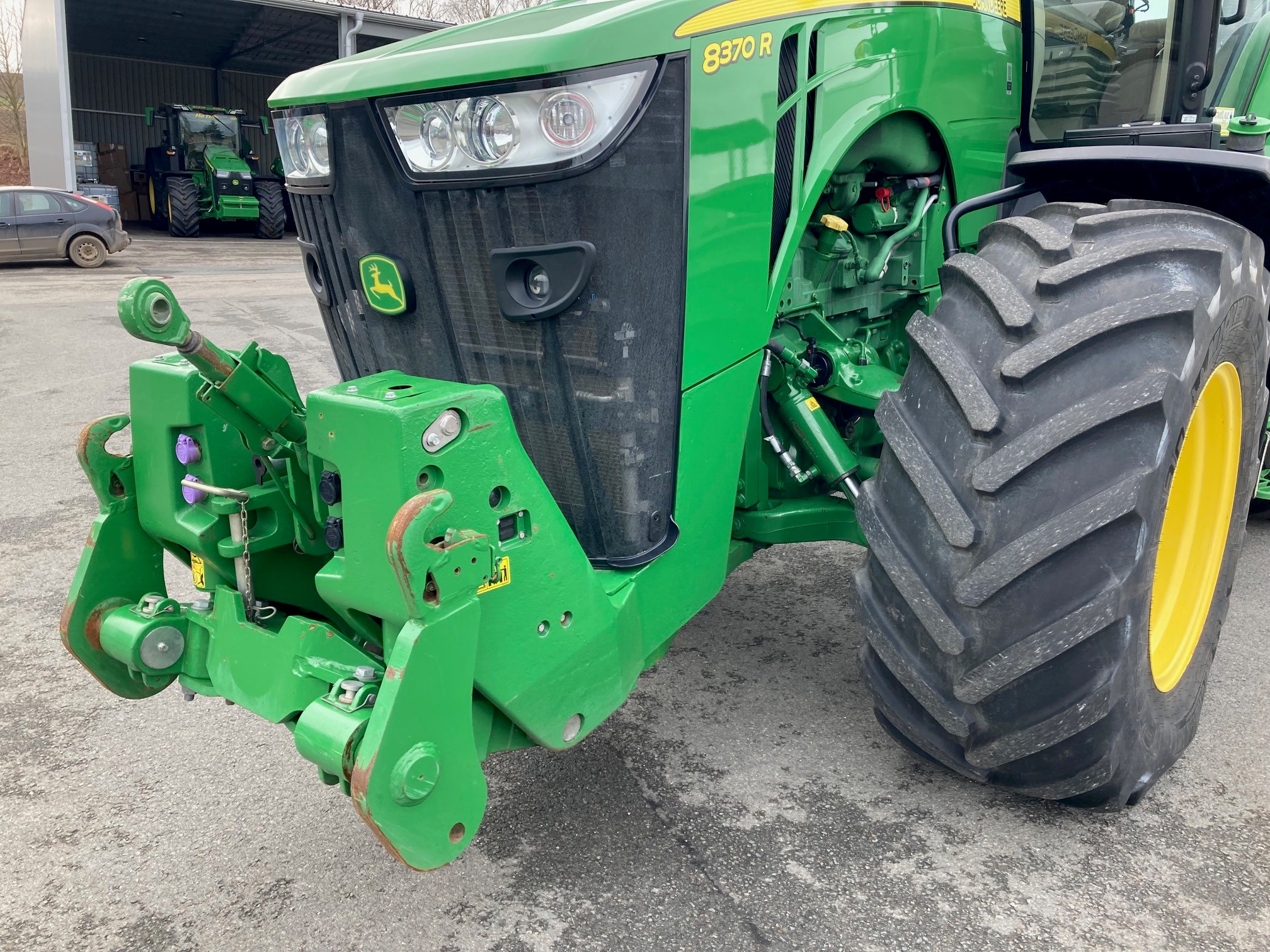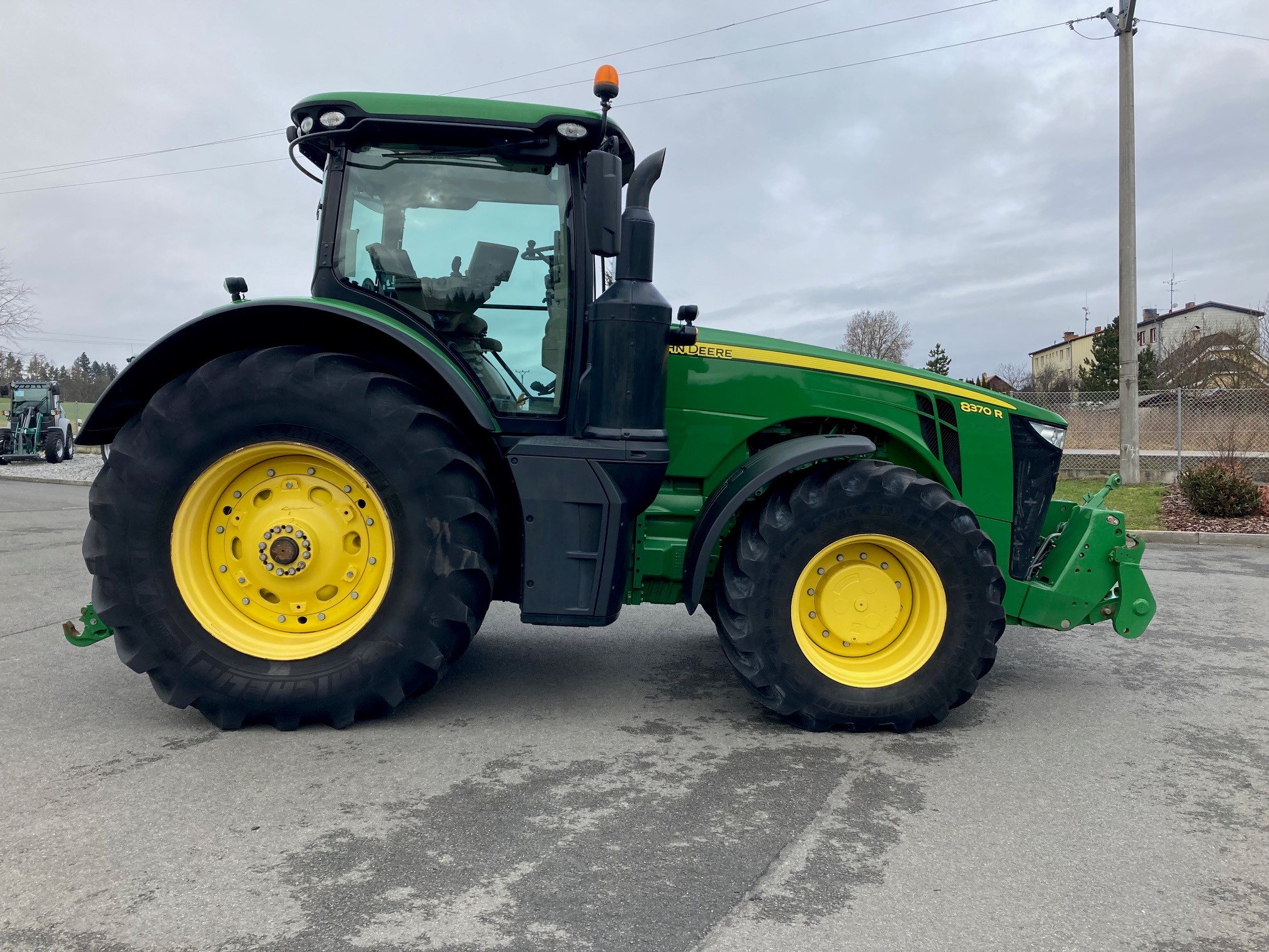 Rok výroby 6/2018, do provozu 26. 9. 2018, jmenovitý výkon motoru 370 PS, jmenovitý výkon s navýšením IPM - 420 PS, maximální výkon motoru bez navýšení 407 PS, plynulá převodovka Autopowr, odpružená přední náprava, aktivní sedačka, výškově stavitelný závěs s automatickou hubicí + K80, vzduchové brzdy dvouhadicové, závaží v zadních kolech 625 kg, čelní hydraulika, automatická klimatizace, procesor 4100, display 10“, 4 hydraulické okruhy + el. joystick, PTO 1000 ot., Nové pneumatiky BKT 600/70 R30 + 710/75R42, AutoTrak příprava+ aktivace, skříňka na nářadí, imobilizer, vypínač baterie, rádio premium, aktivovaný JD link,