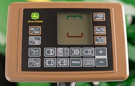 Ovládací monitor Bale Track Plus (ovládání nožů a výklopného dna, nastavení velikosti a měkkého jádra balíku, ovládání vázání, počet omotání sítě, manuální/automatické vázání, B-Wrap, ukazatel tvaru balíku, akustická signalizace téměř plné komory, plné komory, vázání, počítadlo balíků, stav zadní brány)