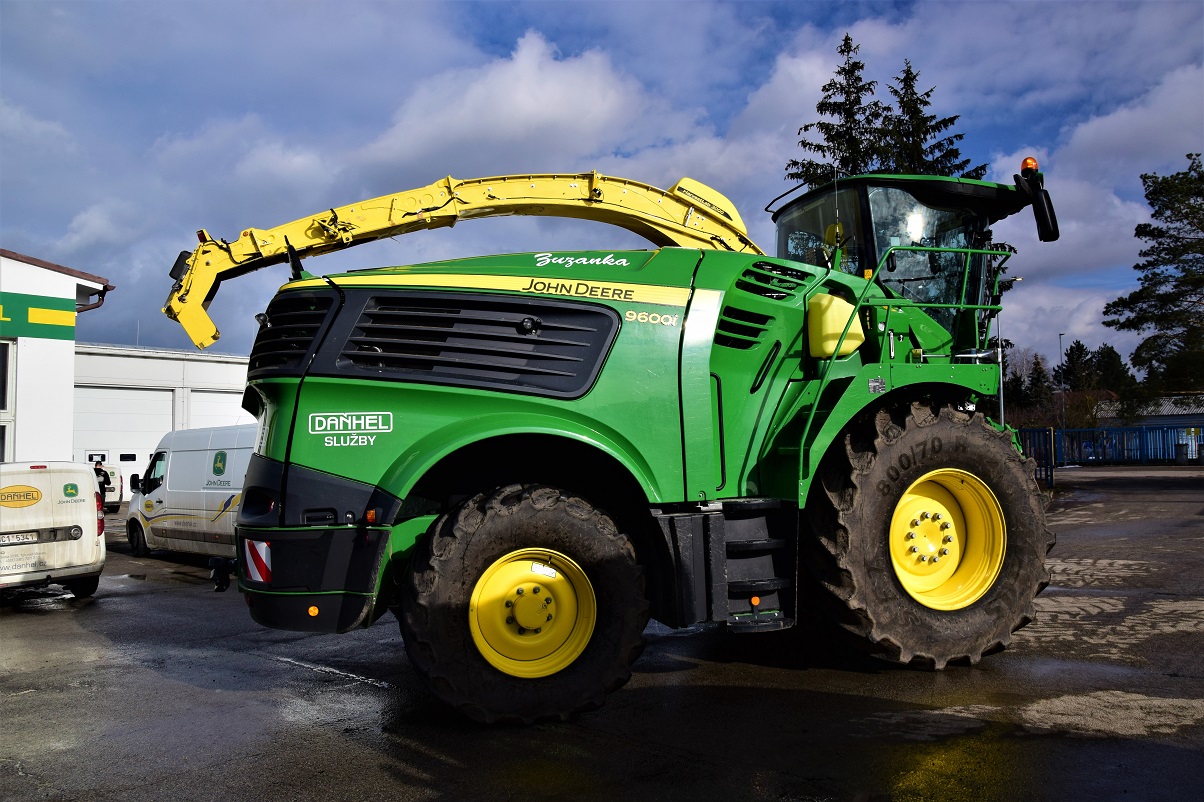 sběrač John Deere o záběru 3 metry