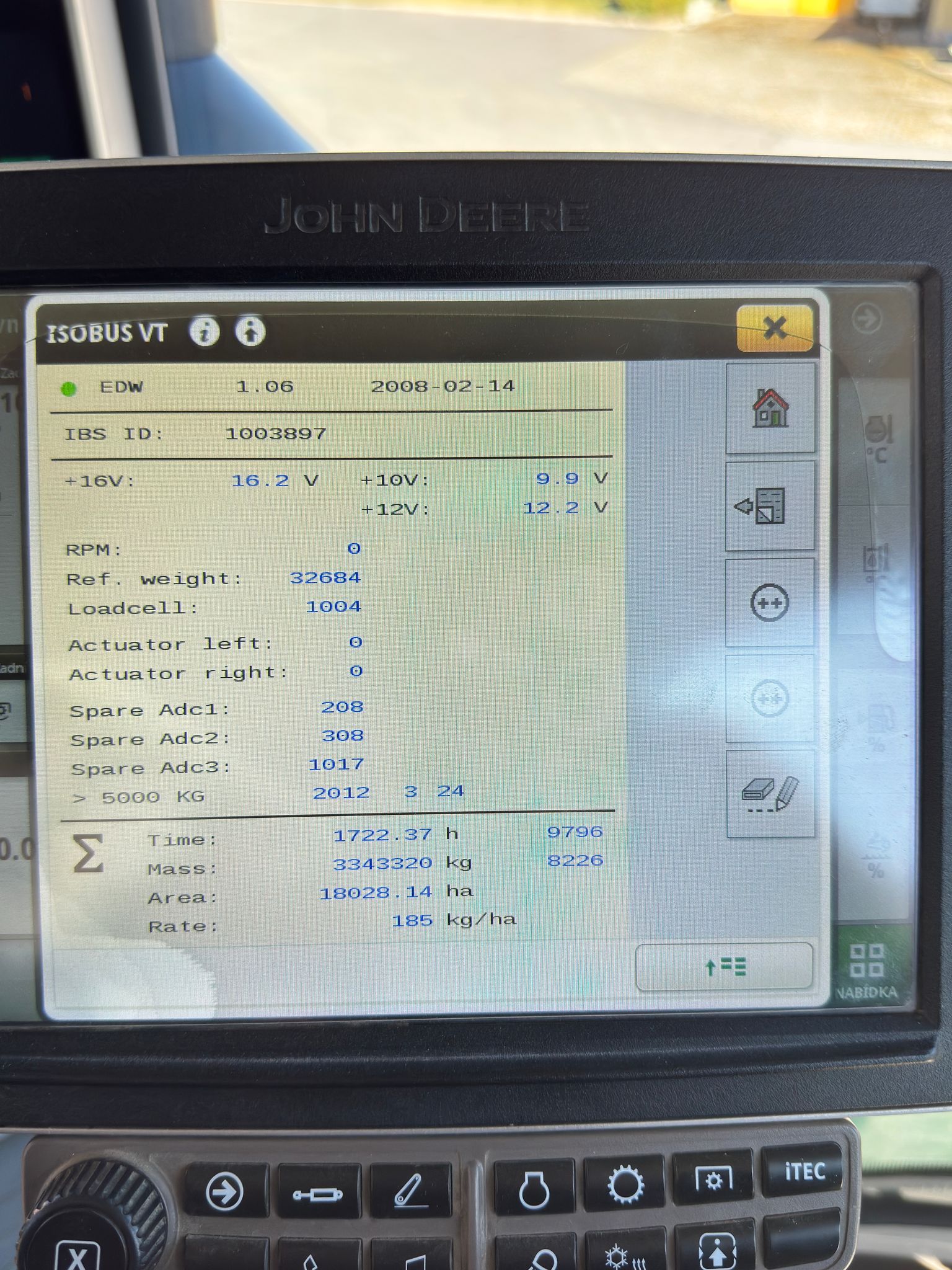 Elektronicky ovládané rozmetadlo vybavené čtyřmi zátěžovými senzory a jedním senzorem referenčním - pro korekce při práci na poli - umožňuje vážení i při jízdě na nerovném pozemku