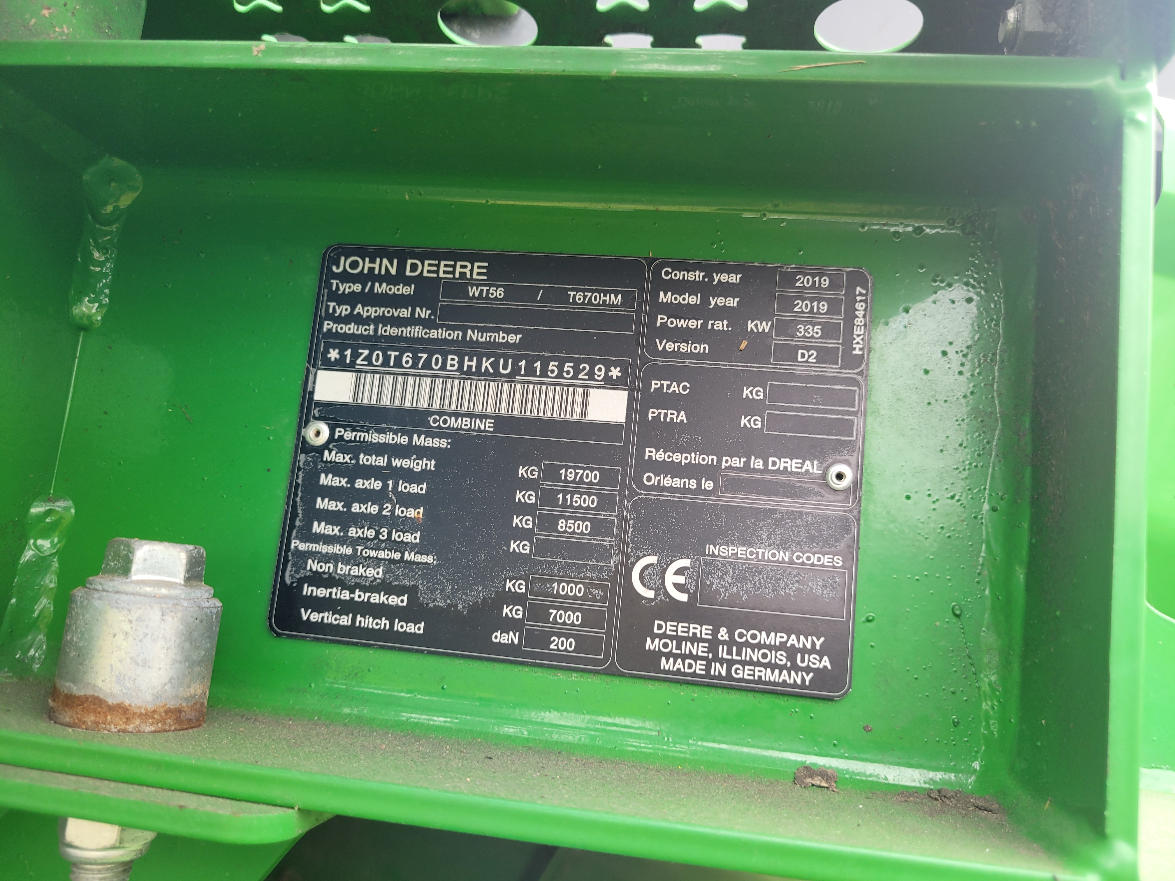 Sklízecí mlátička John Deere T670 4x4, výr.č.1Z0T670BHKU115529
