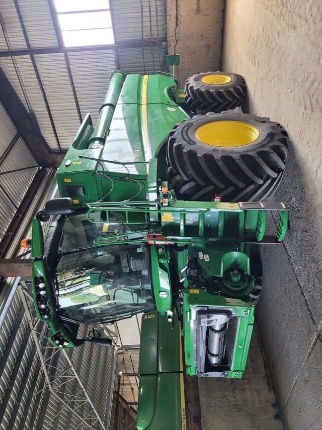 John Deere PowerTech PSS - přeplňovaný šestiválec s dvěma turbodmychadly (pevné a variabilní) o objemu 13,5 l splňující normu V; EGR ventil, DPF filtr a DOC katalyzátor s doživotní životností, SCR pro redukci NOx; nasávání čistého vzduchu k chladičům a filtrům z oblasti nad mlátičkou; přetlakovávaný obal na DPF filtr a tlumič výfuk bez možnosti vniknutí prachu a plev; velký prostor s centralizovanými místy pro údržbu a široké přístupy k motoru, filtrům a chladičům