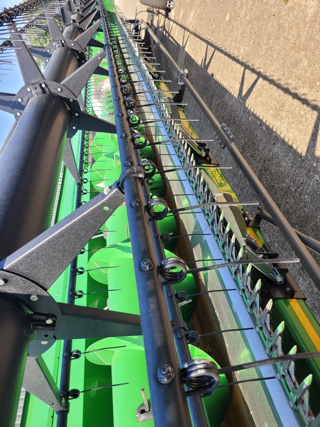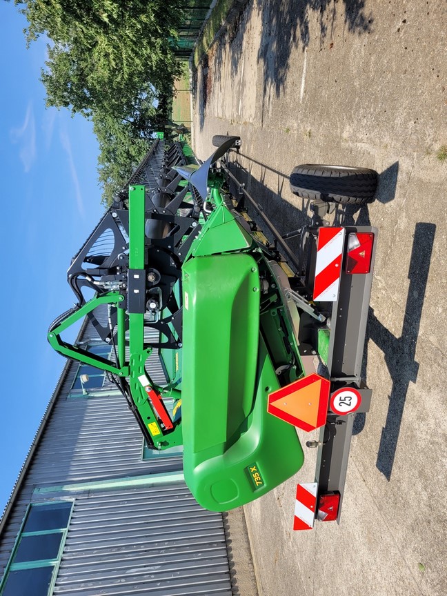 šikmý dopravník o délce 1 727 mm; rychlost vkládání 3,4 m/s; kluzná spojka s momentem 1 300 Nm vpřed a 1 560 Nm vzad; reverzní převodovka o výkonu 110 kW; z kabiny ovládané hydraulické naklopení adaptéru vpřed/vzad v rozsahu 17 °; zvedací písty šikmého dopravníku o průměru 90 mm