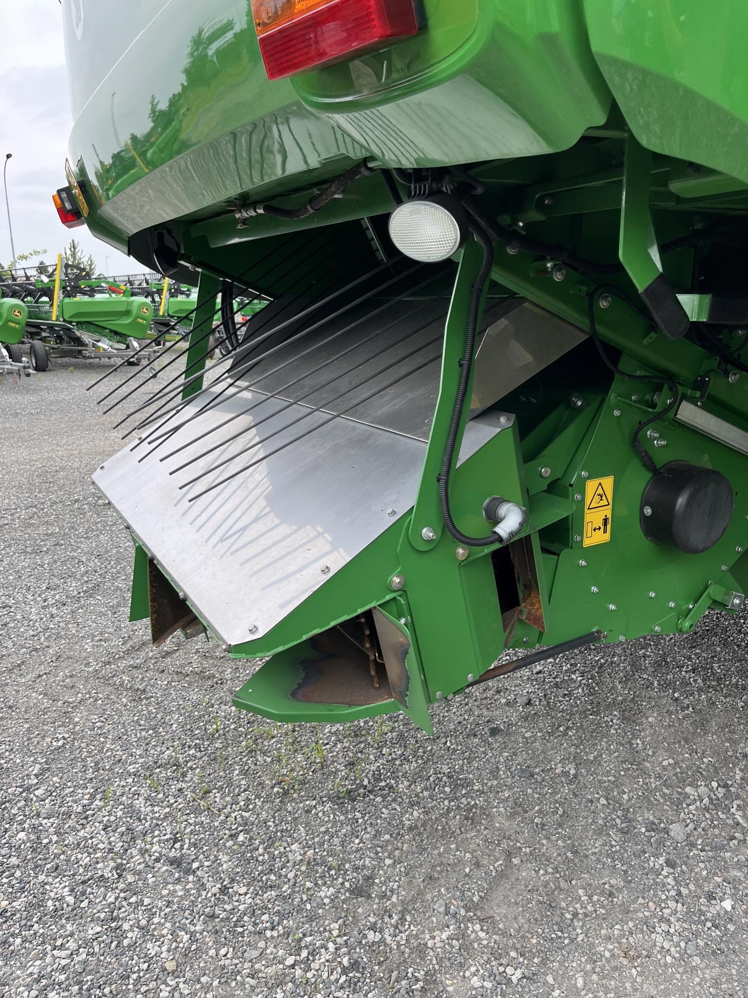 šikmý dopravník o délce 1 727 mm; rychlost vkládání 3,4 m/s; kluzná spojka s momentem 1 300 Nm vpřed a 1 560 Nm vzad; pětirychlostní řazená převodovka; reverzní převodovka o výkonu 202 kW; možnost mechanického naklopení adaptéru vpřed/vzad v rozsahu 17 °; zvedací písty šikmého dopravníku o průměru 90 mm