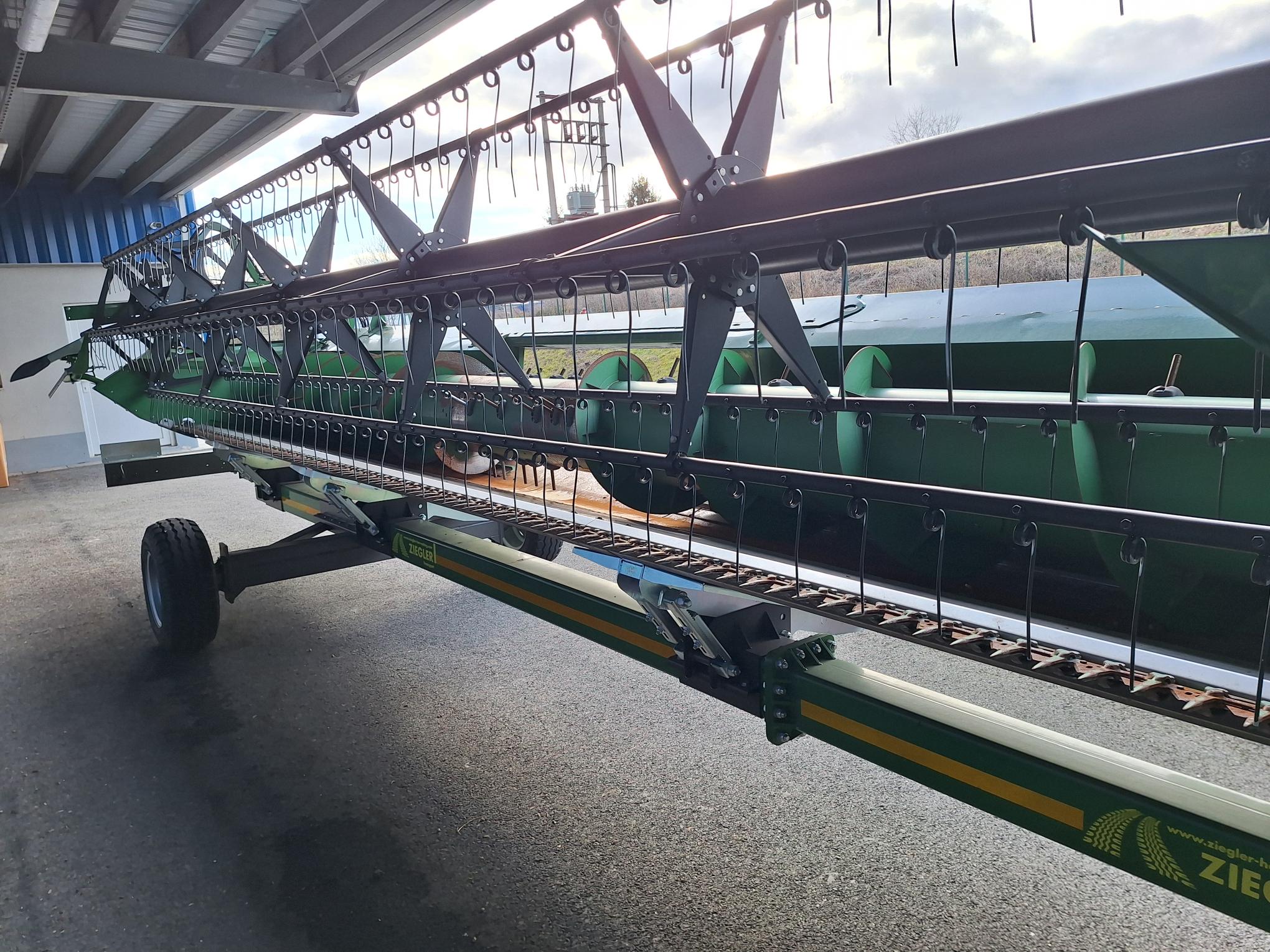šikmý dopravník o délce 1 850 mm; rychlost vkládání 3,6 m/s - urychlovací funkce; kluzná spojka s momentem 900 Nm ; reverzní převodovka o výkonu 59 kW/79 k; možnost mechanického naklopení adaptéru vpřed/vzad v rozsahu 18 °; zvedací písty šikmého dopravníku o průměru 70 mm
