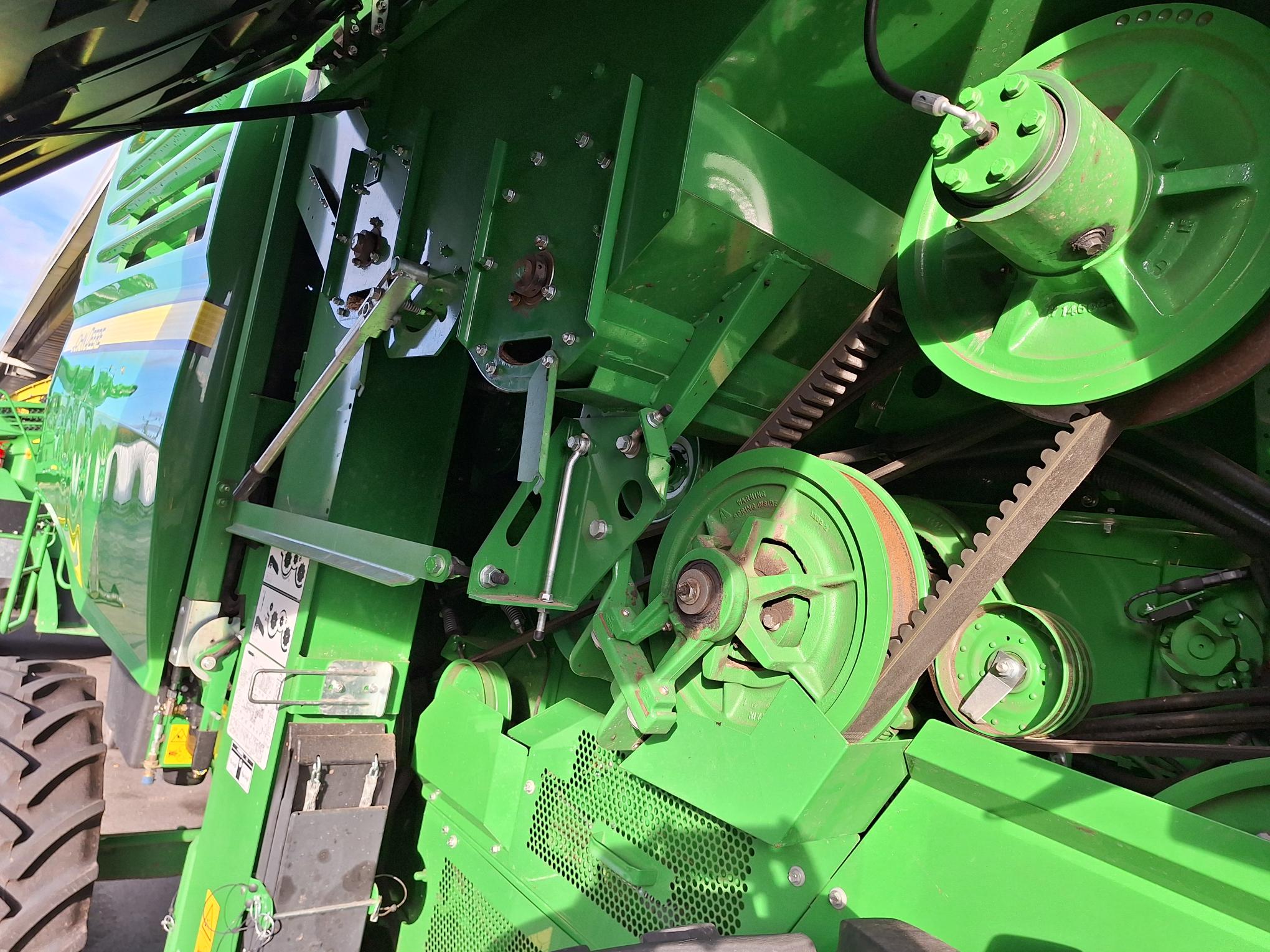 John Deere PowerTech PSS - přeplňovaný šestiválec s dvěma turbodmychadly (pevné a variabilní) o objemu 9,0 l splňující normu V; EGR ventil, DPF filtr a DOC katalyzátor, technologie SCR pro redukci NOx; přetlakovávaný obal na DPF filtr a tlumič výfuku bez možnosti vniknutí prachu a plev - jedinečné řešení na trhu; velký prostor s centralizovanými místy pro údržbu a široké přístupy k motoru, filtrům a chladičům; účinnější filtr paliva a odkalovač