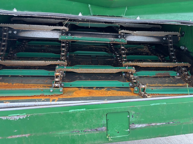 šikmý dopravník o délce 1 850 mm; rychlost vkládání 3,6 m/s - urychlovací funkce; kluzná spojka s momentem 900 Nm ; reverzní převodovka o výkonu 59 kW/79 k; možnost mechanického naklopení adaptéru vpřed/vzad v rozsahu 18 °; zvedací písty šikmého dopravníku o průměru 70 mm