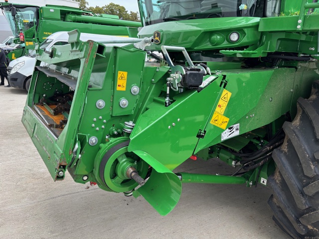 John Deere PowerTech PSS - přeplňovaný šestiválec s dvěma turbodmychadly (pevné a variabilní) o objemu 9,0 l splňující normu V; EGR ventil, DPF filtr a DOC katalyzátor, technologie SCR pro redukci NOx; přetlakovávaný obal na DPF filtr a tlumič výfuku bez možnosti vniknutí prachu a plev - jedinečné řešení na trhu; velký prostor s centralizovanými místy pro údržbu a široké přístupy k motoru, filtrům a chladičům; účinnější filtr paliva a odkalovač