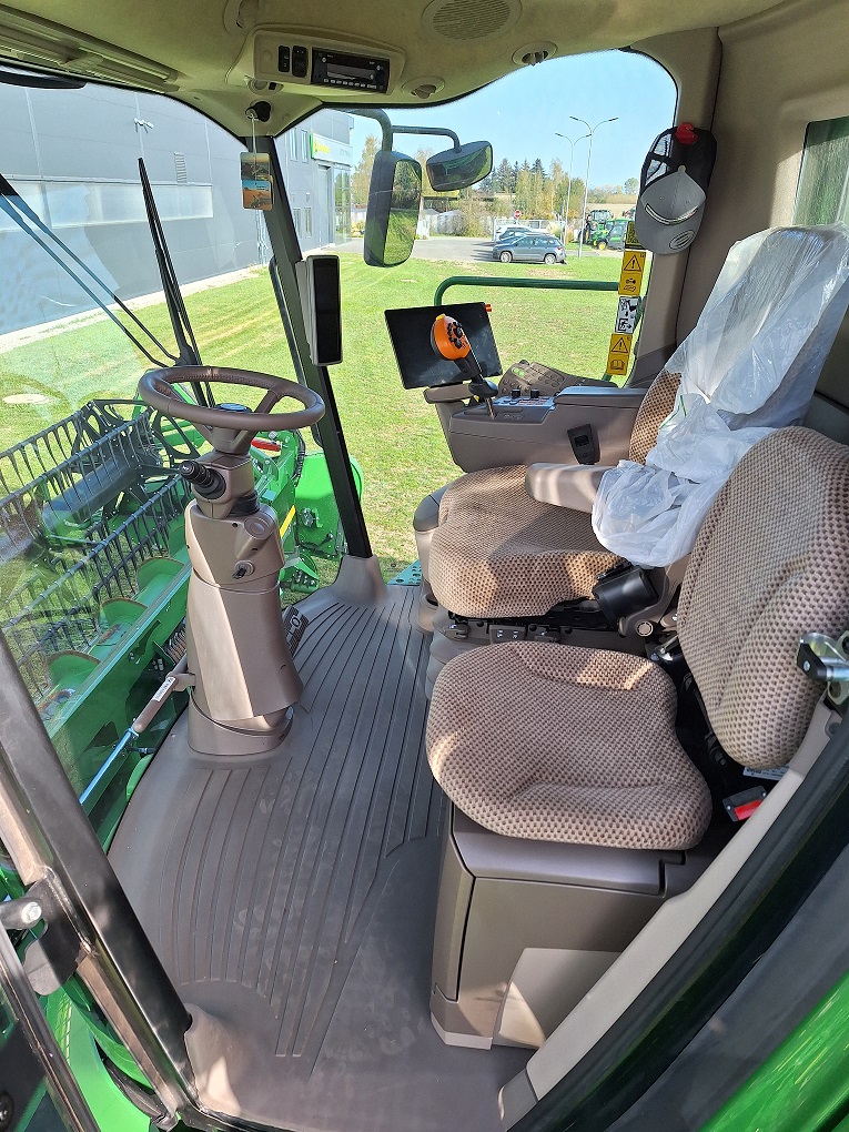 celkový objem prostoru kabiny 3,3 m3, hlučnost 71 dB; komfortní sedadlo spolujezdce; automatické nastavení mlátičky na zvolenou plodinu včetně odlišného nastavení podle 3 podmínek sklizně - vlhká sláma, normální podmínky, suchá lámavá sláma; interaktivní pomocník ICA pro nastavení mlátičky na co nejlepší výkon; multifunkční pojezdová páka a boční ovládací konzola s integrovaným monitorem; úložné prostory a držáky na nápoje; integrovaná chladnička; elektricky nastavitelná a vyhřívaná zpětná zrcátka; vzduchem odpružená sedačka s výškovým nastavením, nastavením vpřed/vzad, nastavitelným sklonem zádové opěrky; kůží obšitý volant