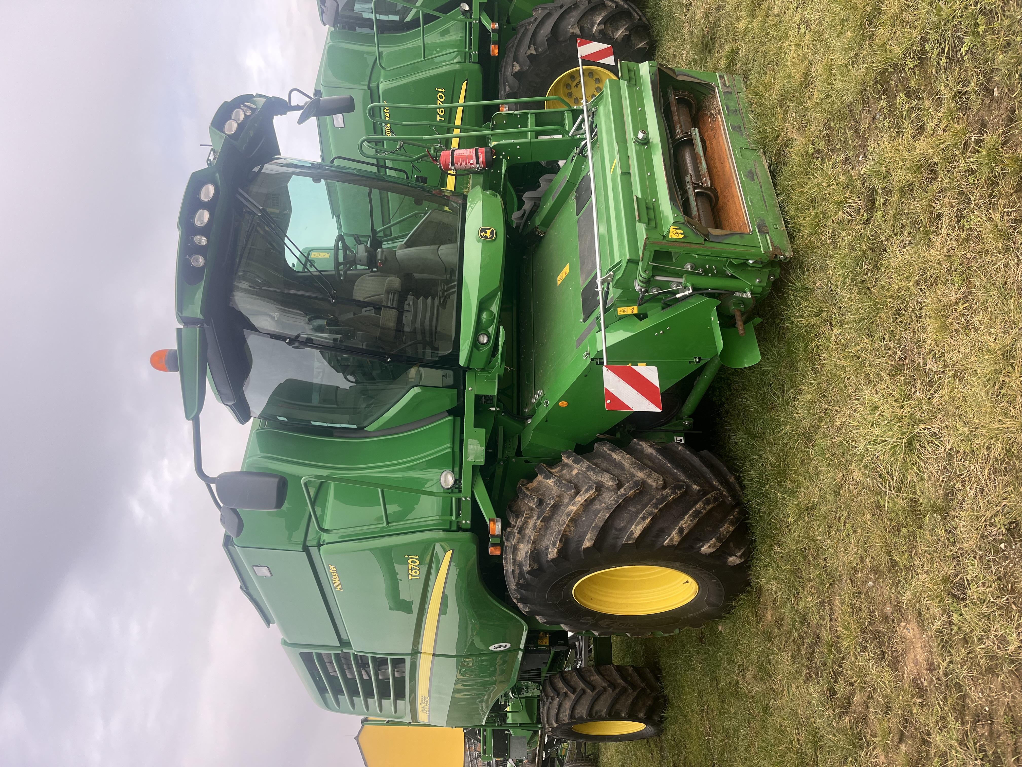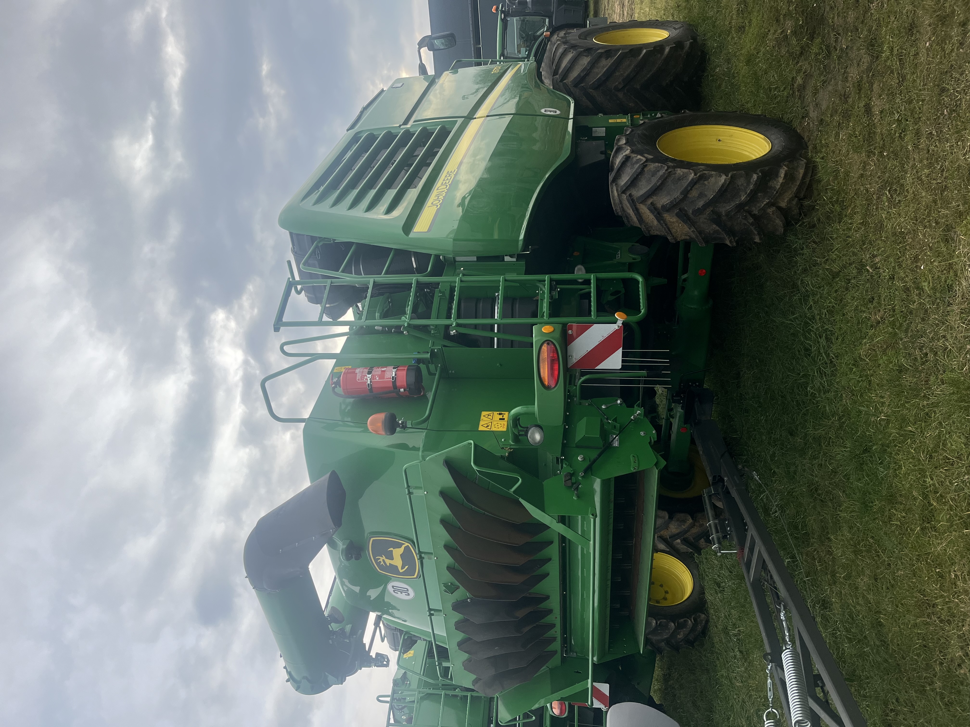 John Deere PowerTech PSS - přeplňovaný šestiválec s dvěma turbodmychadly (pevné a variabilní) o objemu 9,0 l splňující normu V; EGR ventil, DPF filtr a DOC katalyzátor, technologie SCR pro redukci NOx; přetlakovávaný obal na DPF filtr a tlumič výfuku bez možnosti vniknutí prachu a plev - jedinečné řešení na trhu; velký prostor s centralizovanými místy pro údržbu a široké přístupy k motoru, filtrům a chladičům; účinnější filtr paliva a odkalovač