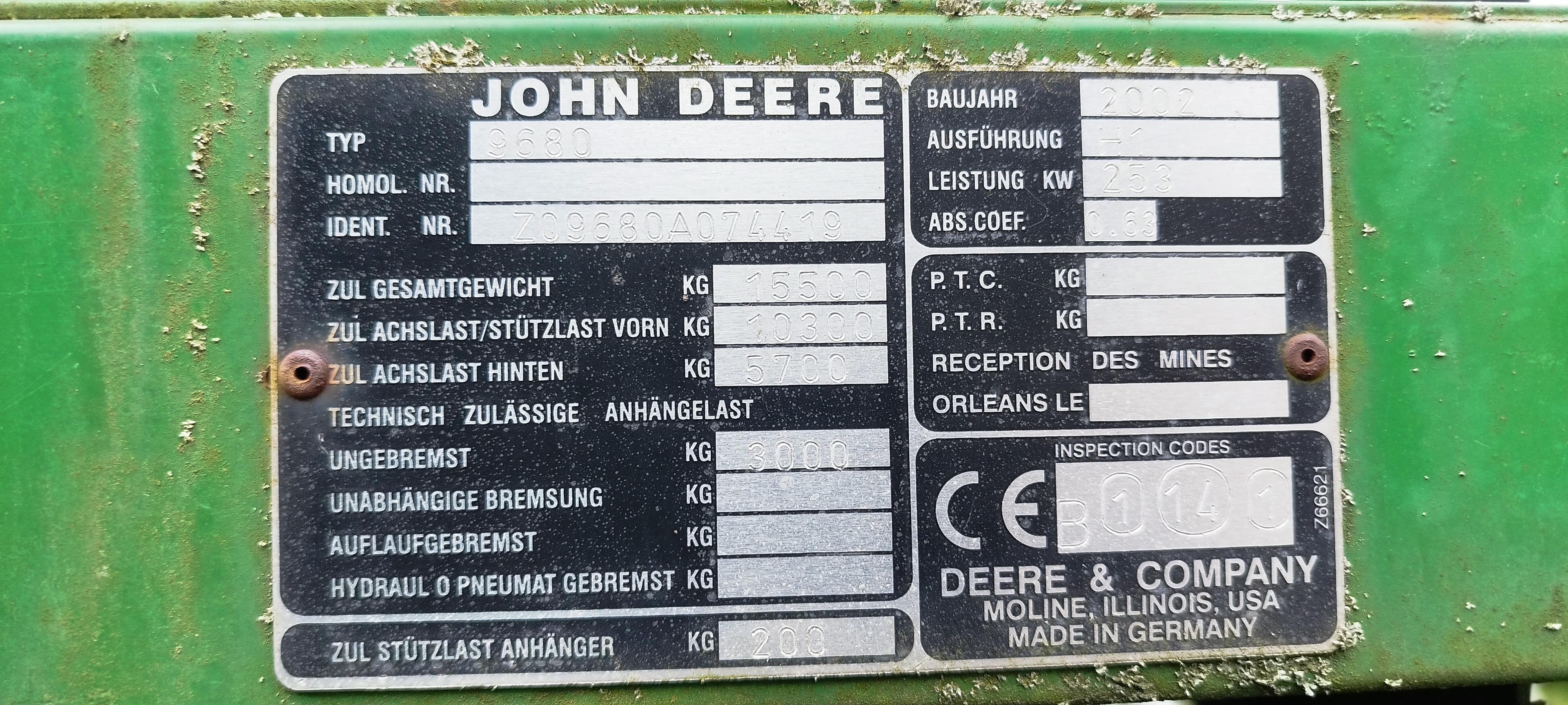 rok výroby 2002, stav MTH: motor 3371, mlátička 2234, stav hektarů: 2658ha, objem zásobníku 11000l, záběr lišty 6,7m. Kombajn je vybavem drtičem slámy, metačem plev, řepkovým adaptérem, 3 kamery. Ke stroji je český návod k obsluze, papírový katalog náhradních dílů, množství náhradních dílů (řemeny, prsty do lišty, náhraní dopravník na přemlat atd).