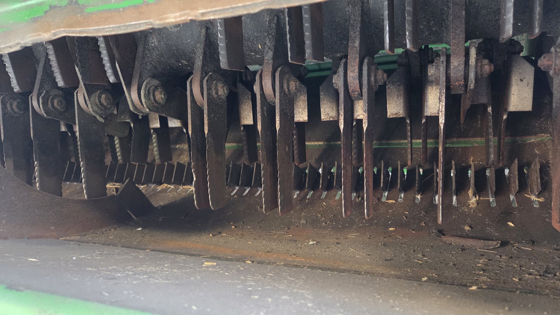 | drtič Intermediate - 100 zubatých nožů; rychlostavitelné protiostří; dvě rychlosti drtiče bez nutnosti přehazování řemene; při drcení distribuce plev skrze drtič - rozhoz v celém záběru; přestavění mezi drcením/řádkováním mimo kabinu; bez podávacího bubnu; hydraulicky hnané aktivní rozmetací kotouče pro kvalitní rozhoz nad 10 m záběru; ukládání slámy na řádek včetně plev |