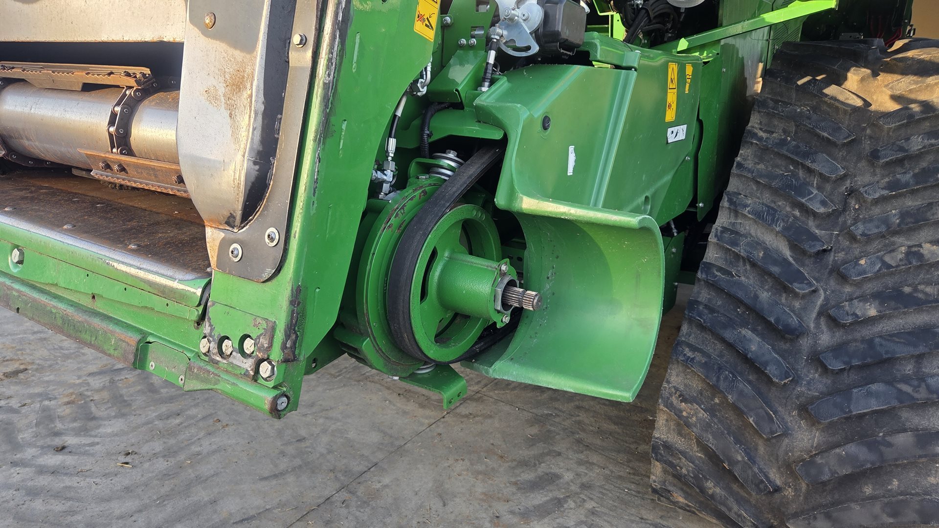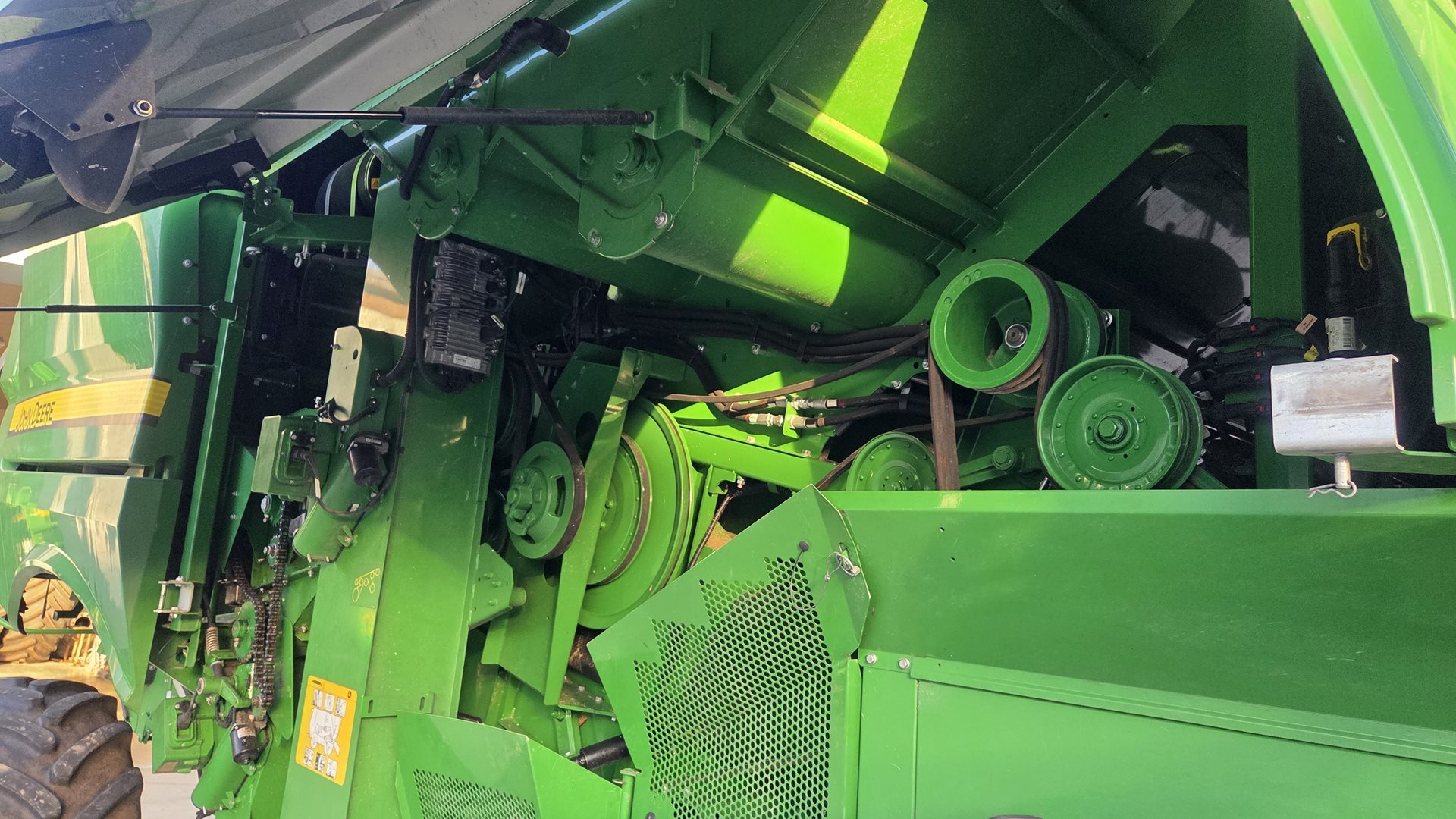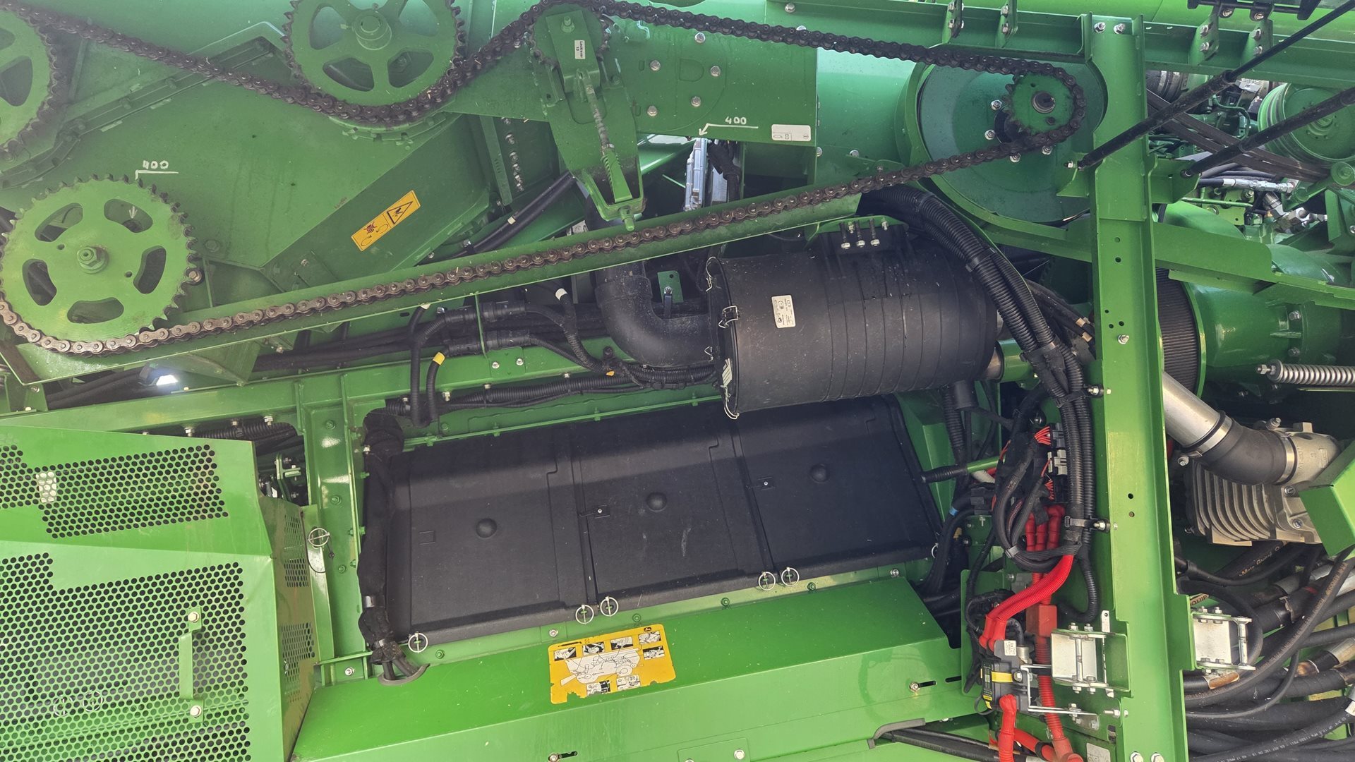 John Deere PowerTech PSS - přeplňovaný šestiválec s dvěma turbodmychadly (pevné a variabilní) o objemu 13,5 l splňující normu V; EGR ventil, DPF filtr a DOC katalizátor s doživotní životností, SCR pro redukci NOx; nasávání čistého vzduchu k chladičům a filtrům z oblasti nad mlátičkou; přetlakovávaný obal na DPF filtr a tlumič výfuk bez možnosti vniknutí prachu a plev; velký prostor s centralizovanými místy pro údržbu a široké přístupy k motoru, filtrům a chladičům