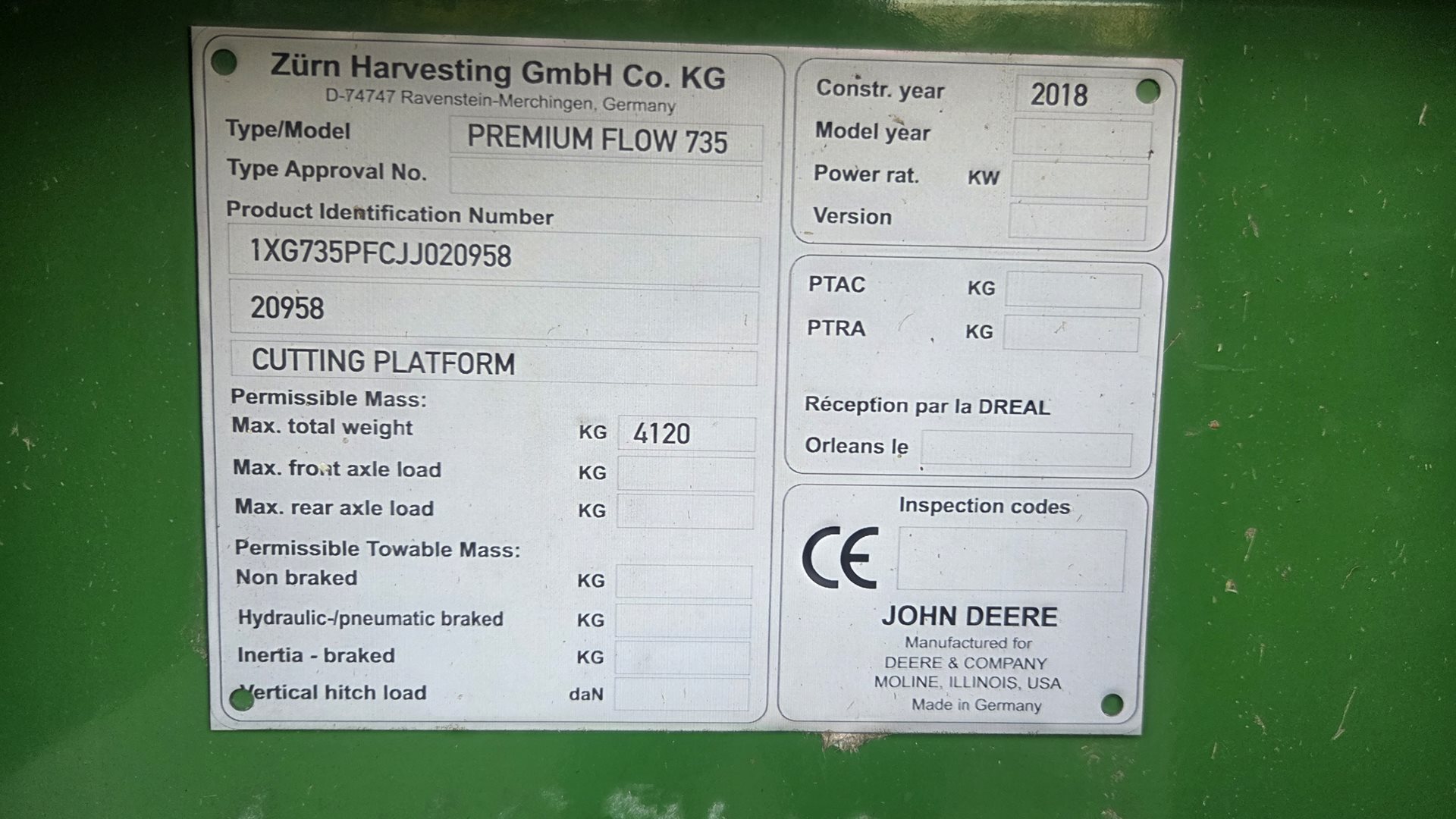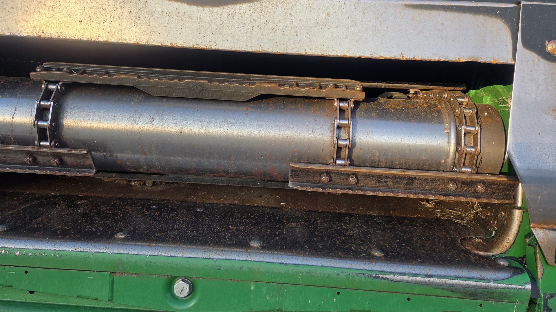 | šikmý dopravník o délce 1 727 mm; rychlost vkládání 3,4 m/s; kluzná spojka s momentem 1 300 Nm vpřed a 1 560 Nm vzad; reverzní převodovka o výkonu 110 kW; z kabiny ovládané hydraulické naklopení adaptéru vpřed/vzad v rozsahu 17 °; zvedací písty šikmého dopravníku o průměru 90 mm |