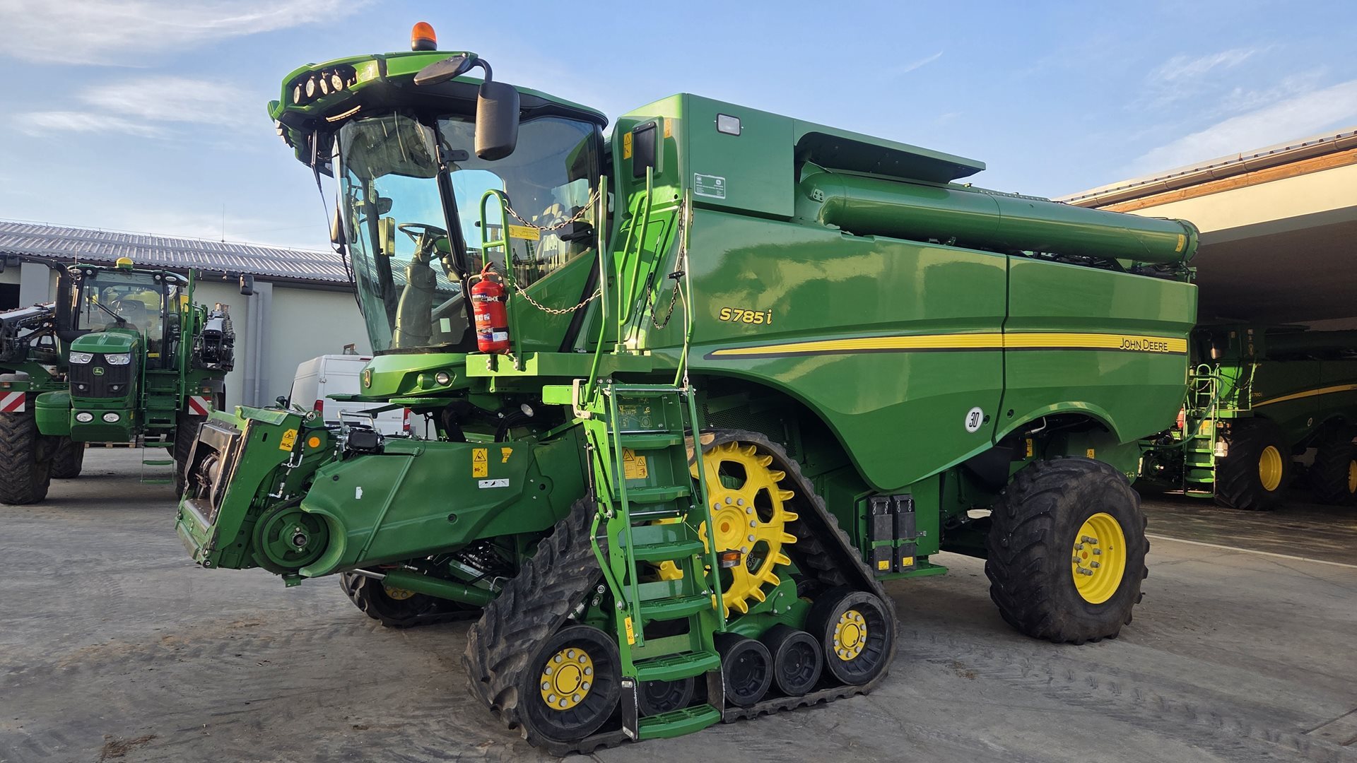 | návod k obsluze; katalog náhradních dílů; 2x hasicí přístroj; poloautomatický závěs pro připojení vozíku (8 t); sférické nájezdové zrcátko na pravé straně; účinnější palivový předčistič; optimalizace mazacích míst s dlouhými intervaly mazání (50 a 200 h); zajišťovací klíny pod kola; přídavné klasňovací plechy - 3 pásky; spodní ochrana elevátorů a šneků; sada originálního nářadí |
