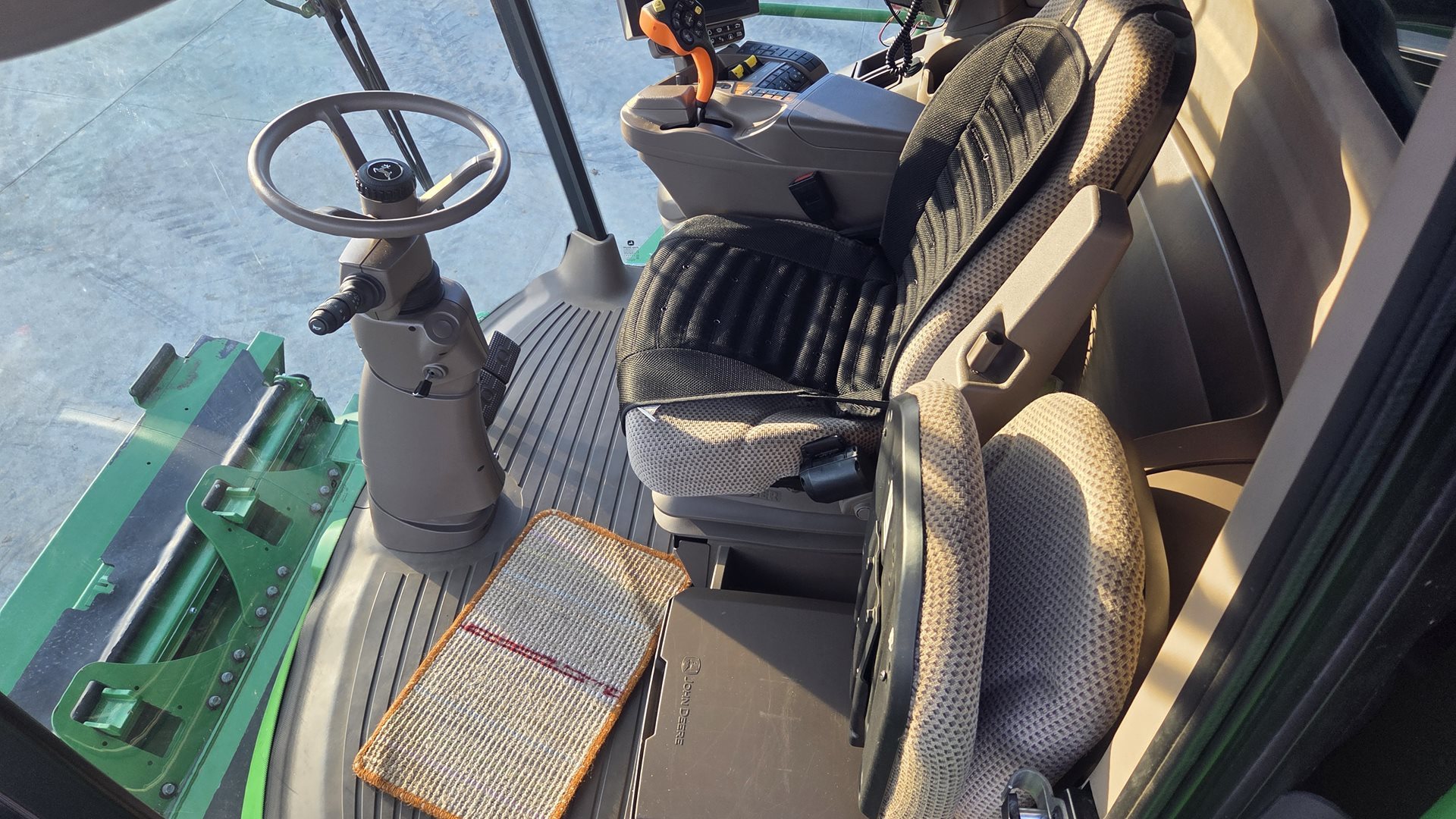 | celkový objem prostoru kabiny 3,3 m3, hlučnost 71 dB; komfortní sedadlo spolujezdce; automatické nastavení mlátičky na zvolenou plodinu včetně odlišného nastavení podle 3 podmínek sklizně - vlhká sláma, normální podmínky, suchá lámavá sláma; interaktivní pomocník ICA pro nastavení mlátičky na co nejlepší výkon; programovatelná ergonomická multifunkční pojezdová páka a boční ovládací konzola s integrovaným monitorem; úložné prostory a držáky na nápoje; integrovaná chladnička; elektricky nastavitelná a vyhřívaná zpětná zrcátka; vzduchem odpružená sedačka s výškovým nastavením, nastavením vpřed/vzad, nastavitelným sklonem zádové opěrky; kůží obšitý volant |
