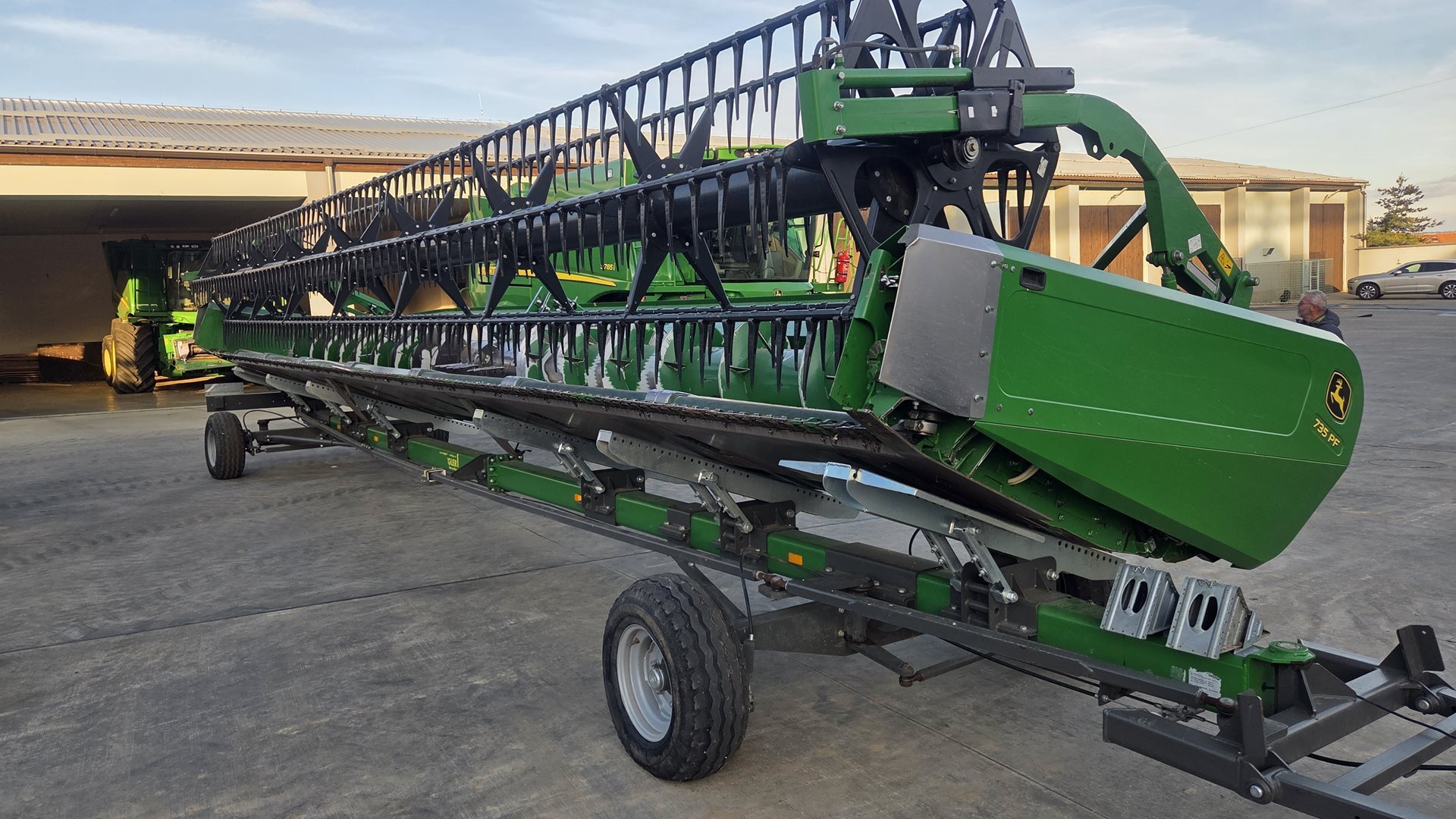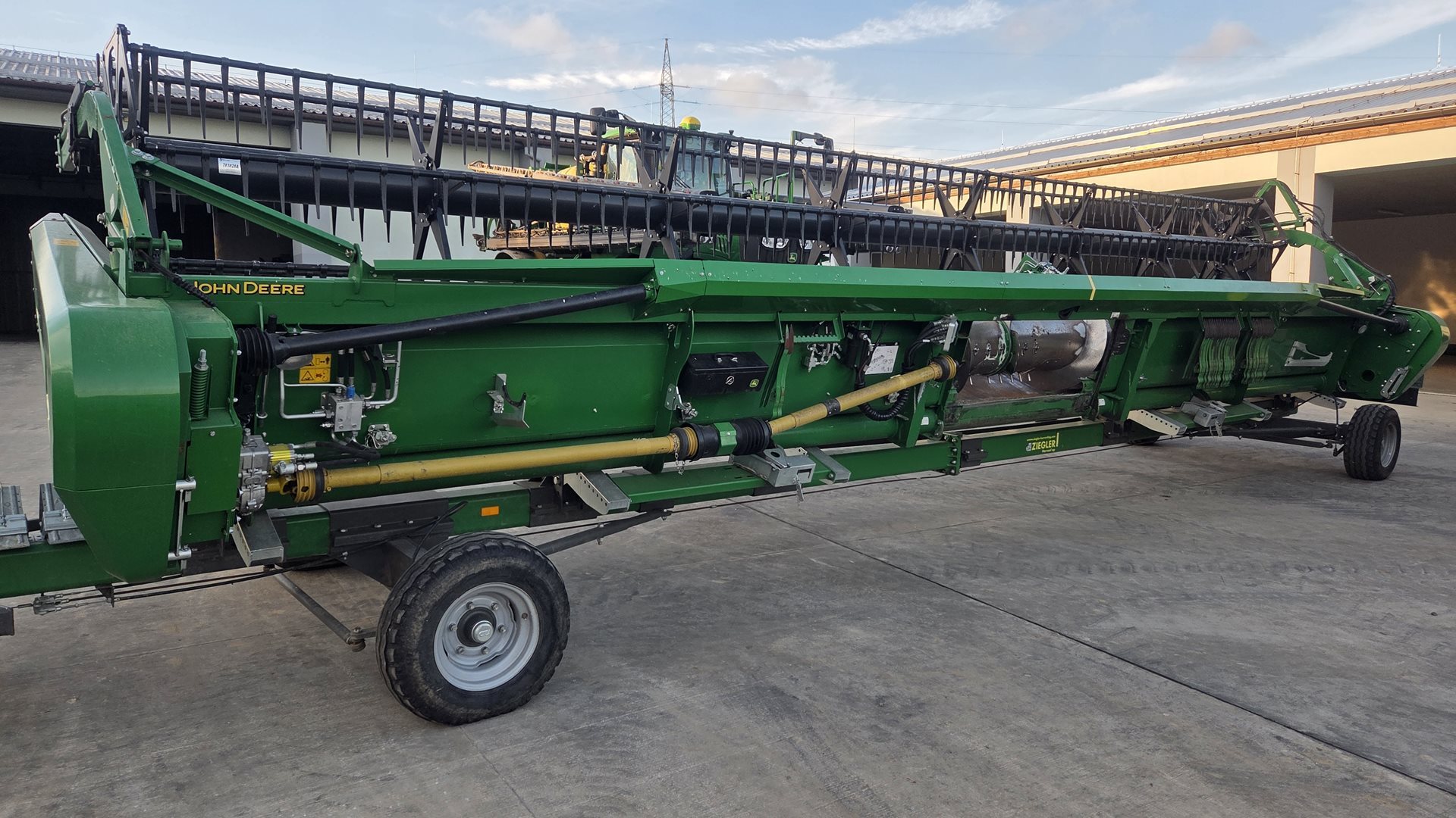 | robustní podvozek ZIEGLER POWER; určeno pro lištu řady 600R/700PF o záběru 10,70 m; obě nápravy jsou řiditelné - mechanická synchronizace; podvozek kopíruje stopu kombajnu bez nutnosti nadjíždění; verze 30 km/hod |