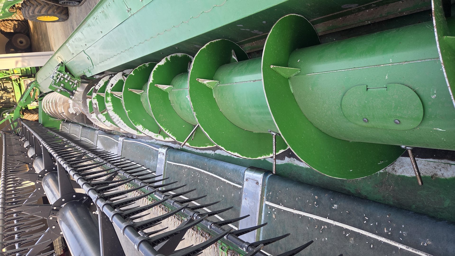 | záběr 10,70 m; kosa systému Schumacher Easy Cut II; průměr průběžného šneku 762 mm; palce rychlovýměnné se zadržovacím systémem proti vniknutí palce do mlátičky; hydraulické zvedání/spouštění průběžného šneku; robustní rám z lišt řady 600X; příprava pro daný typ mlátičky; 2 krátké sklopné děliče; kompletní sada zvedáků; náhradní kosa; funkce uložení výšky strniště i polohy přiháněk do paměti; nerezové plechy vkládání; štít proti přepadávání materiálu přes rám lišty; 2 mechanicky poháněné, rychlovýměnné aktivní děliče pro sklizeň řepky; hydraulicky poháněné a regulovatelné vkládací pásy rovnoměrně podávájí materiál i za těžkých podmínek; držáky děličů na zadní straně lišty |