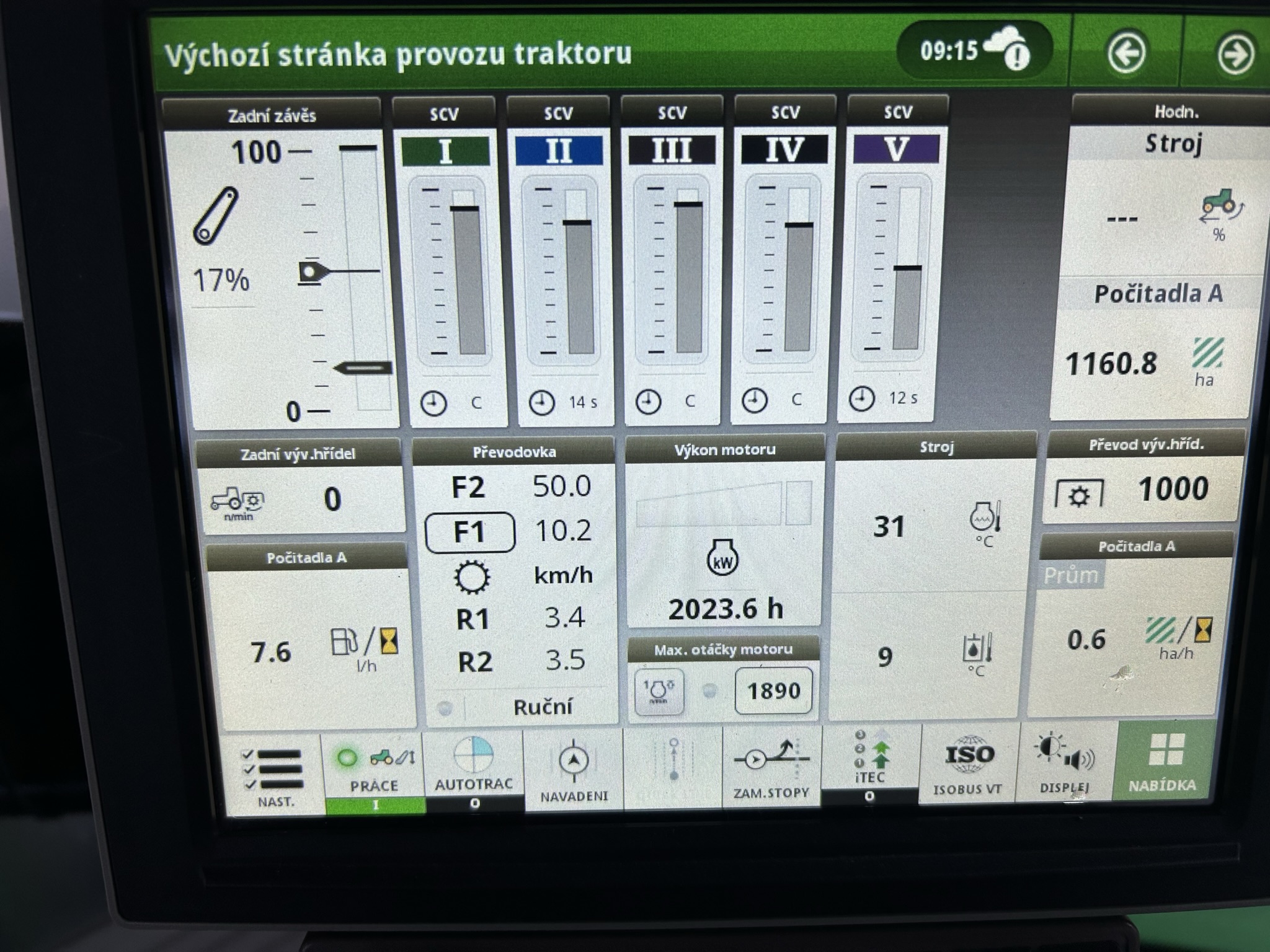 barevným dotykovým displejem 10“, možnost ovládat AutoTrac. Výkonnostní monitor a ISO Bus. Systém souvraťové automatiky iTEC a příprava AutoTrac. Dva majáky. |