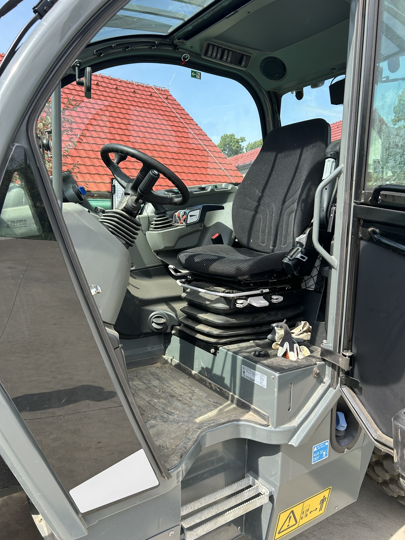 komfortní, odpružená kabina ROPS/FOPS, odhlučněná, odizolovaná pružnými elementy, s viditelností v úhlu 360°; akustický a světelný indikátor zatížení výložníku; reverzace směru jízdy umístěna na joysticku; veškeré ukazatele umístěny v multifukčním displeji o uhlopříčce 18 cm, nastavitelná citlivost pracovní hydrauliky ve třech úrovních; nedělené panoramatické čelní okno s vynikajícím výhledem