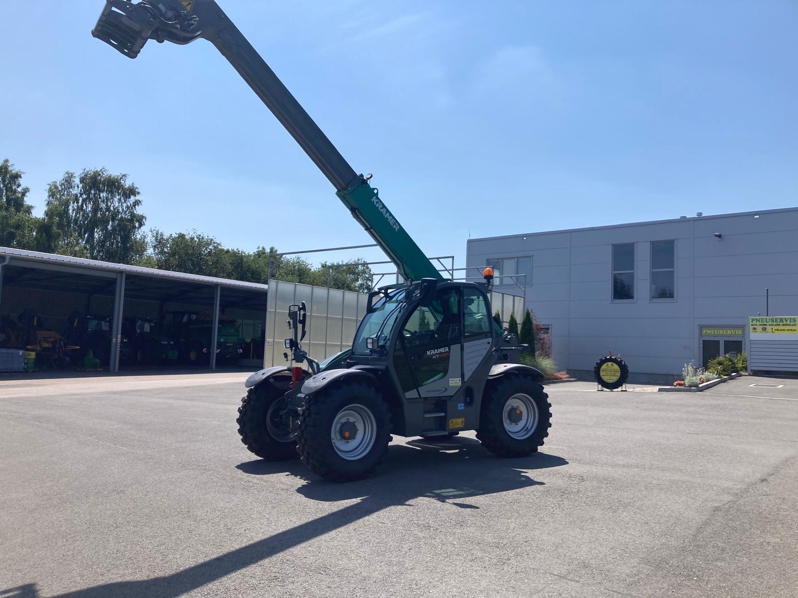 Motor Deutz 3,6l o výkonu 136 PS a točivém momentu 500 Nm při 1600 ot./min.; systém řešení spalin systémem SCR + DOC +DPF; reverzace chodu ventilátoru chladiče, plynulá hydrostatická převodovka ECOSPEED od firmy Walterscheid - rychlost od 0 do 40 km/hod. - bez řazení rychlostí, včetně snižování otáček motoru při dosažení max. rychlosti, pneu 460/70R24 Michelin Bibload - 80% vzorku ,vyšší (nadstandard) kabina s klimatizací, komfortní, vzduchem odpružené sedadlo Grammer, rádio s MP3 a Bluetooth handsfree, SMART HANDLING - ovládání teleskopu výložníku, odpružení výložníku, paměť pozice nářadí, maják; registrace stroje pro provoz na pozemních komunikacích; světelný a akustický indikátor přetížení; řízení všemi 4 koly/přední nápravou/krabí chod; zadní závěs automat, zadní kamera, systém upínání nářadí KRAMER, centrální mazání