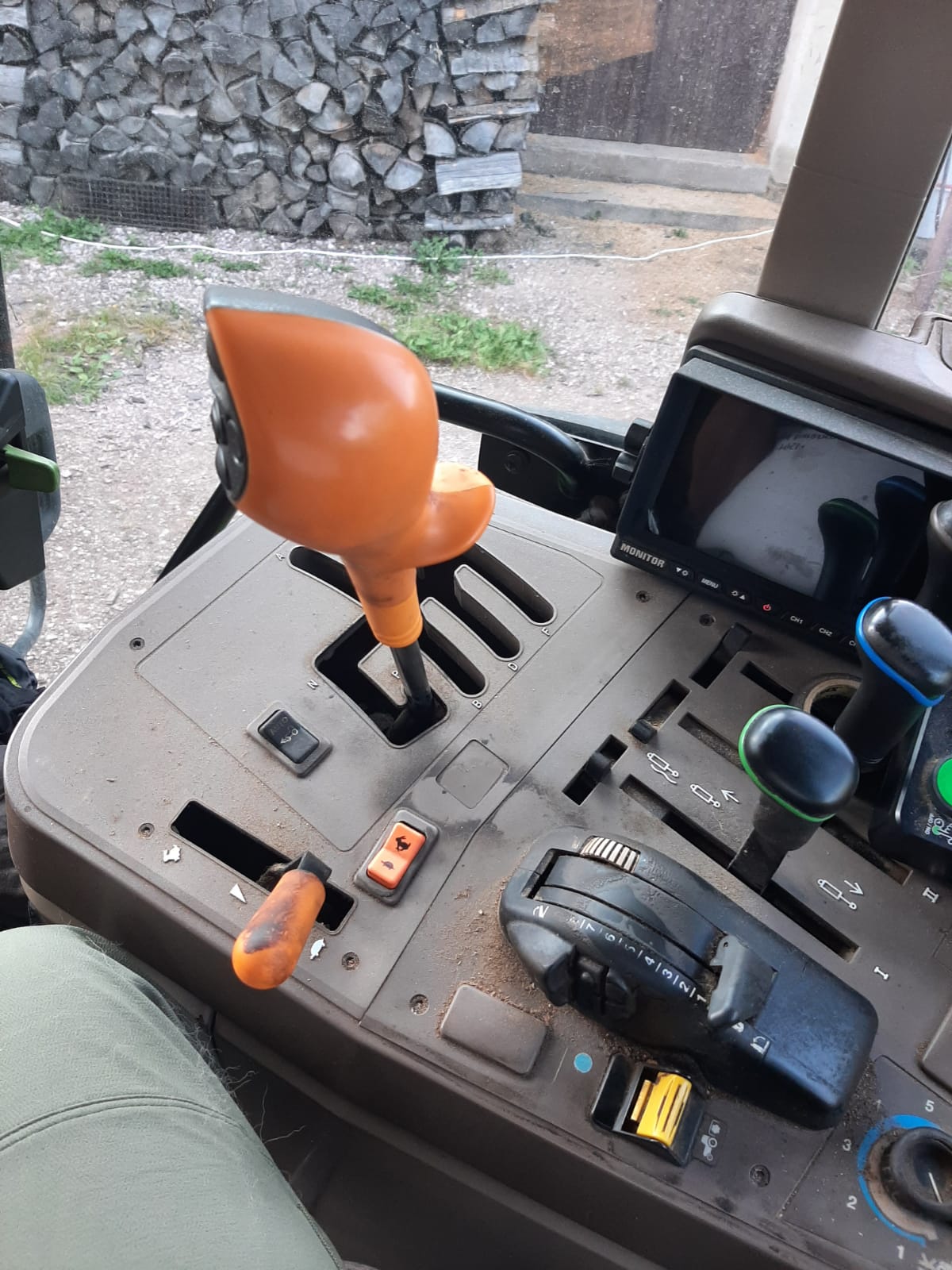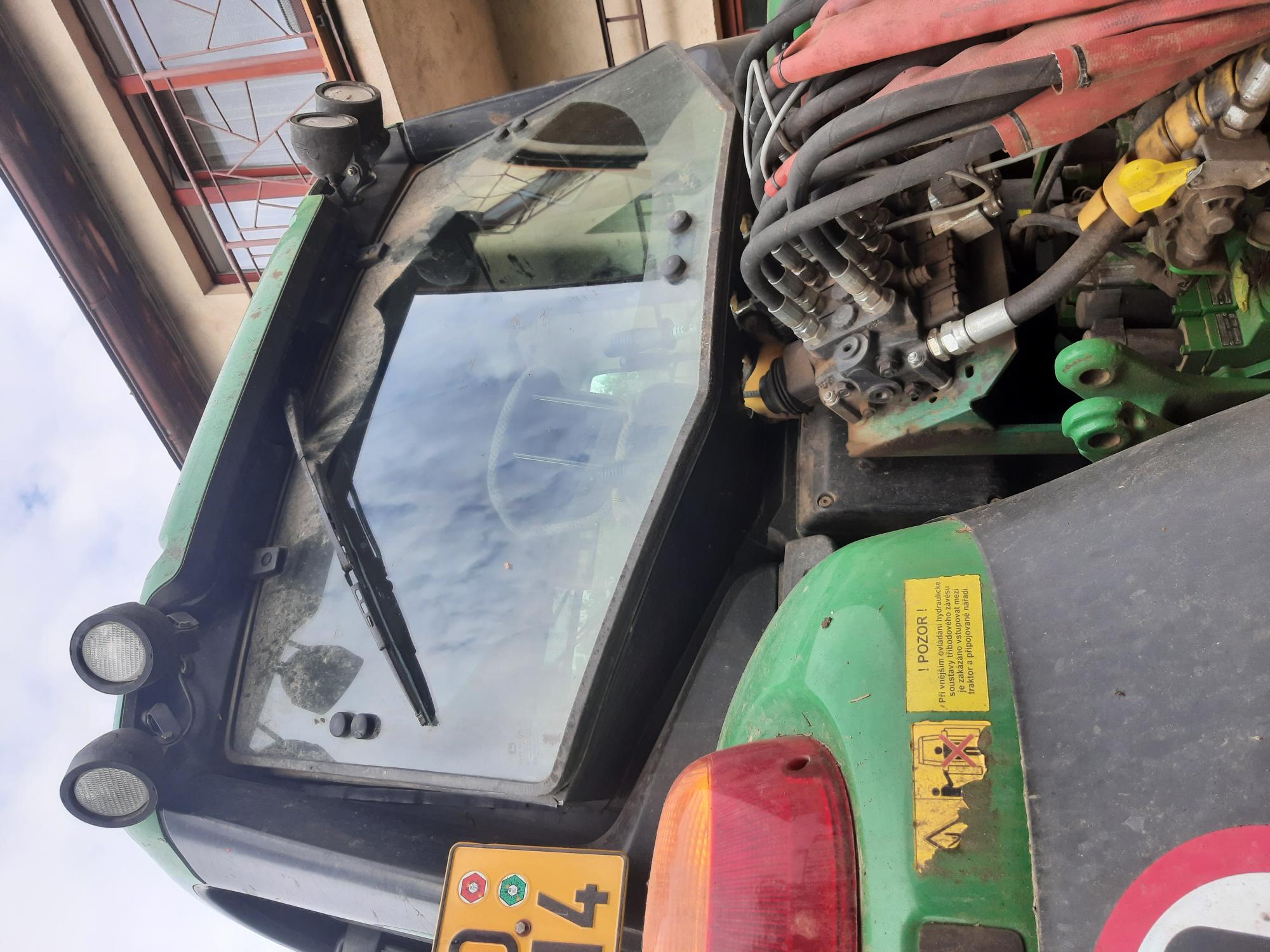 JD 6115M s lesní úpravou, otoč pod vzduchovou sedačku, oplechování spodku traktoru, rozšíření zadního okna pro ovládání vyvážečky,