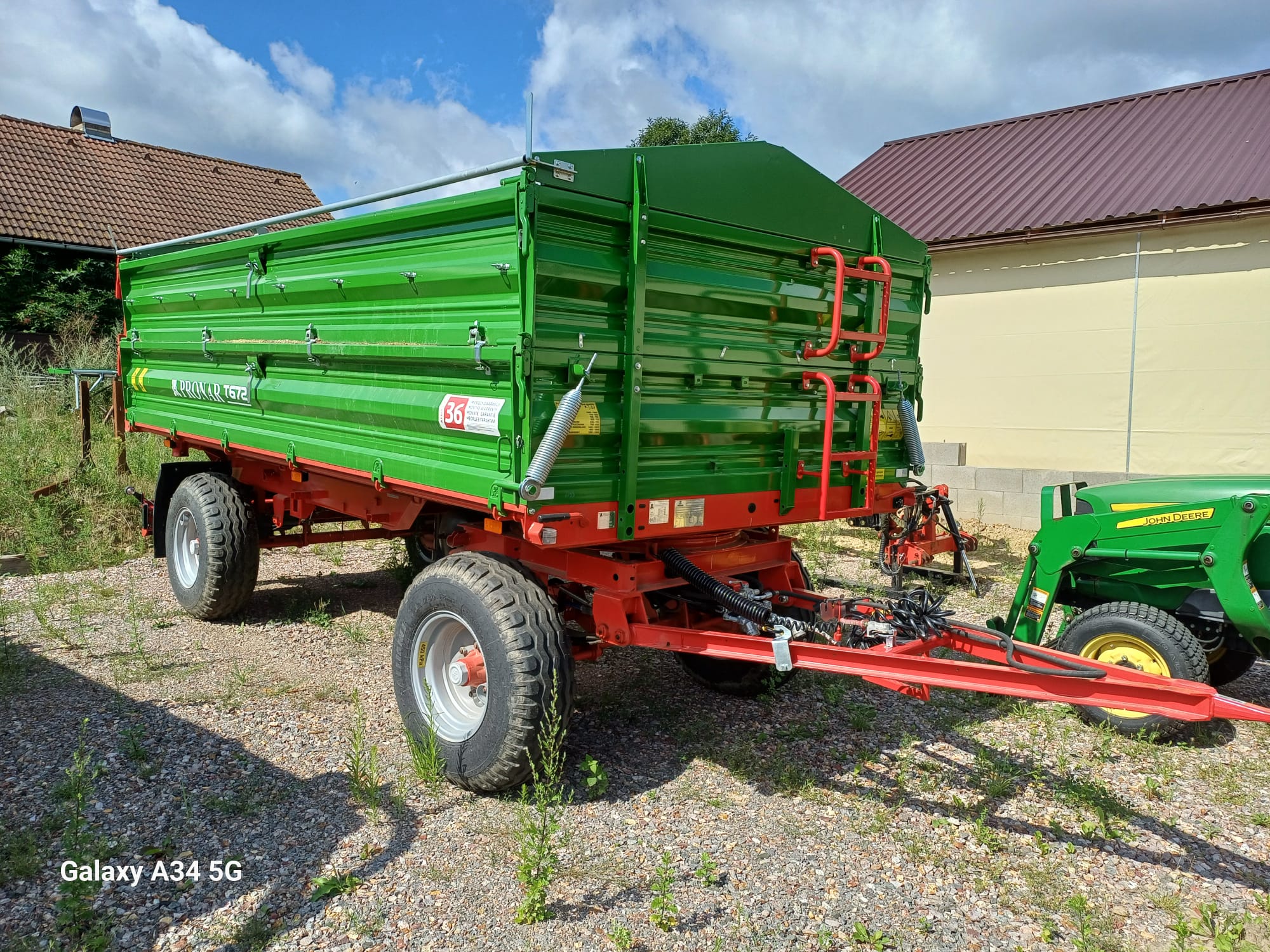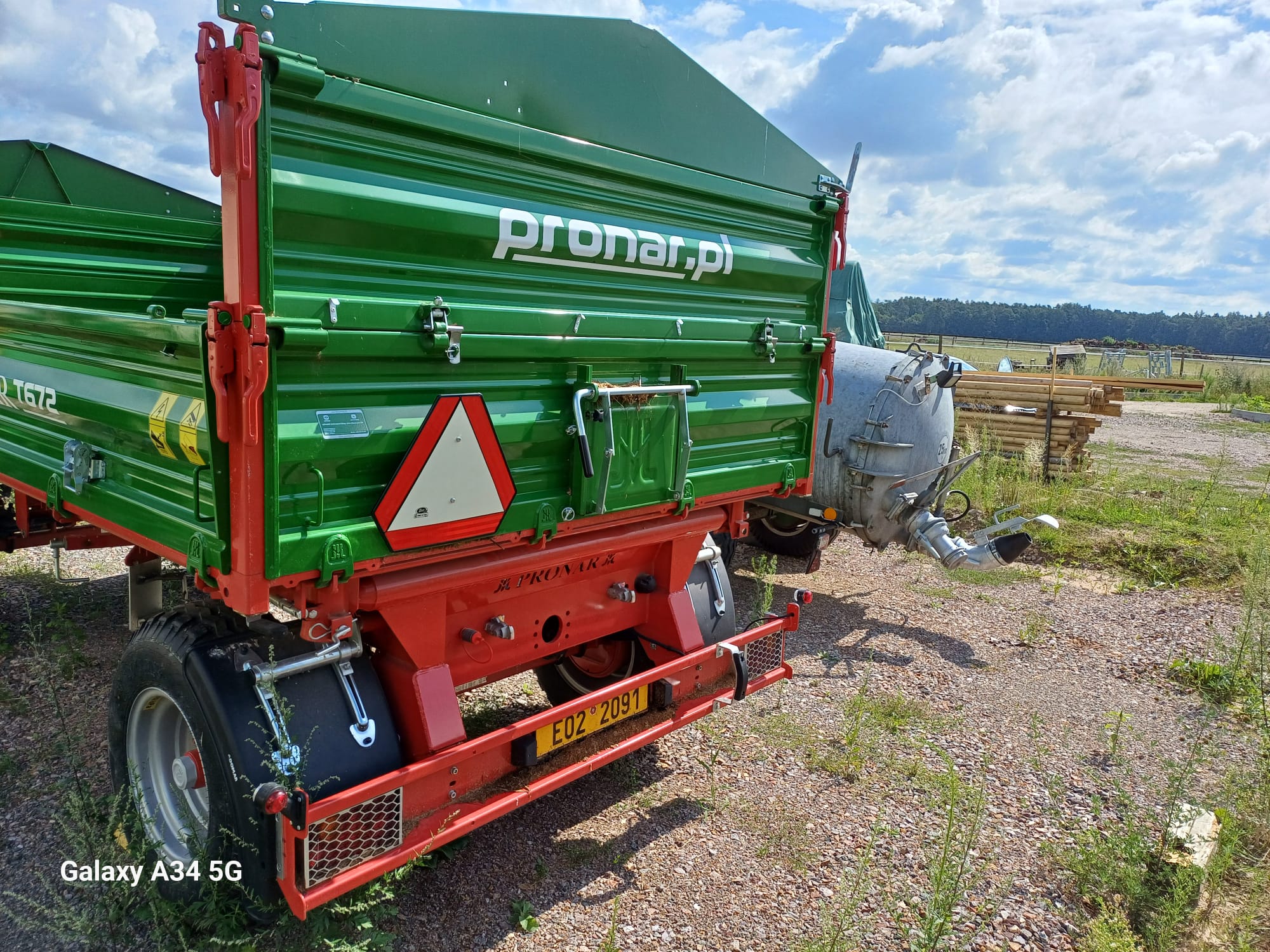 zánovní traktorový přívěs Pronar T672 s nástavky a plachtou. Minimálně jetý, bezvadný stav. Rolovatelná plachta se skládací středovou tyčí nebyla používána.