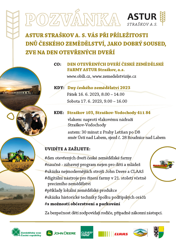 ASTUR Straškov, a.s. Vás při příležitosti Dnu českého zemědělství, jako dobrý soused, zve na den otevřených dveří.